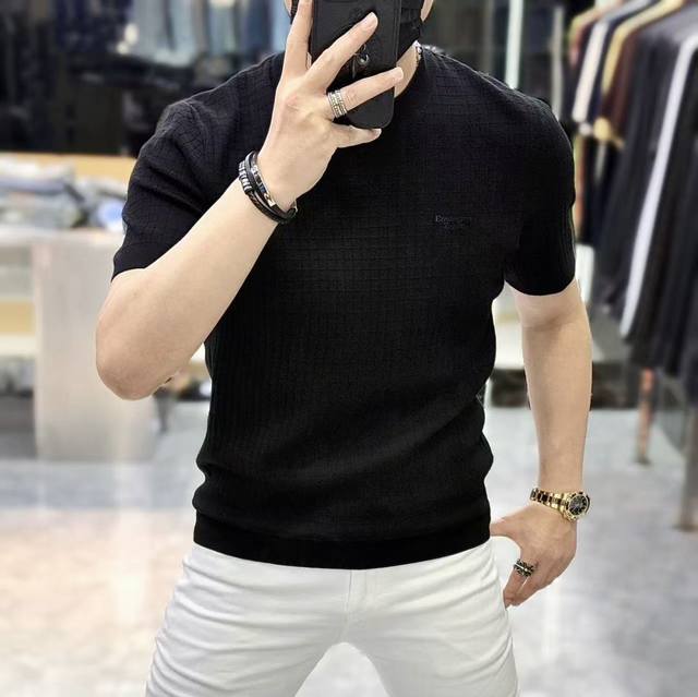 Jenia-2025Ss Autumn and Winter Short-Sleeve Knitted Sweater Series! A must-have for casual business outerwear or innerwear. Made from premium worsted mulberry silk blended fabric, the fabric has a delicate feel and is comfortable and snug. The upper body shape is comfortable and warm, and the counter logo design is very unique. Don't miss it, my dear men! Sizes: M-3Xl