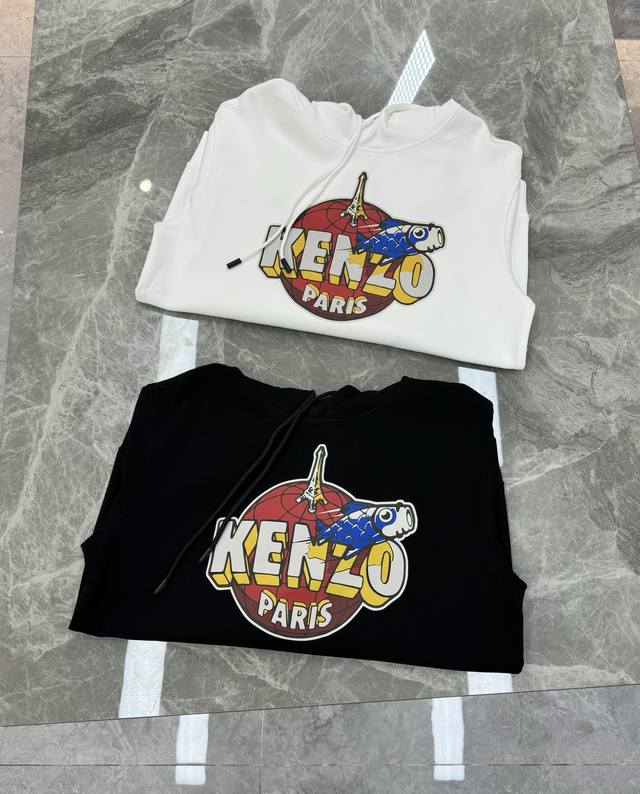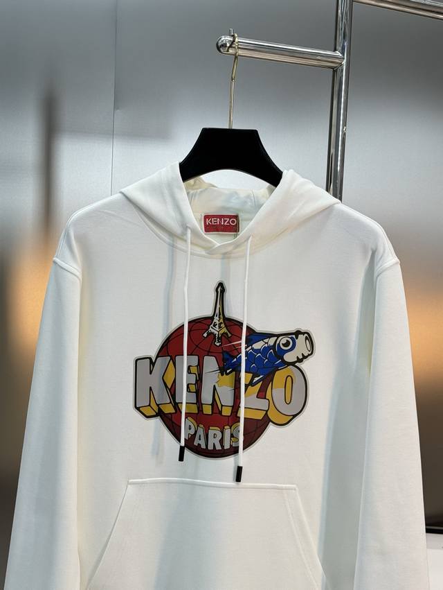 Kenzo 25S New Hooded Sweatshirt, made of heavyweight Tencel cotton fabric, soft and warm, perfect for autumn and winter. Colors: Black, White. Sizes: M-3XL (slightly flared fit). Recommended size: L for someone 175cm tall and weighing 145kg.