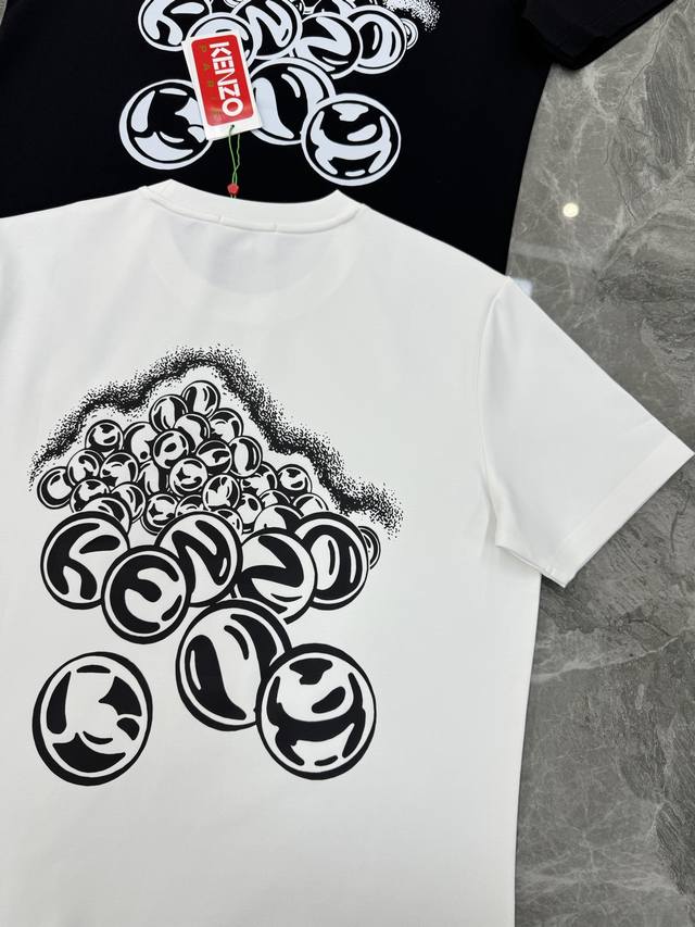 Kenzo X Smiley collaboration T-shirt, made of modal and pure cotton, comfortable and breathable. The front features a Smiley graphic overlaid with the Kenzo logo, exuding a trendy and artistic vibe. The black and white color scheme is fresh and versatile, with the black version being cool and stylish, easily adaptable to everyday casual wear. Suitable for all body types, it looks great paired with jeans or sweatpants. Colors: Black, White. Sizes: M-3XL (slim fit), S and 4XL available for custom orders. L is recommended for someone 175cm tall and weighing 140kg.