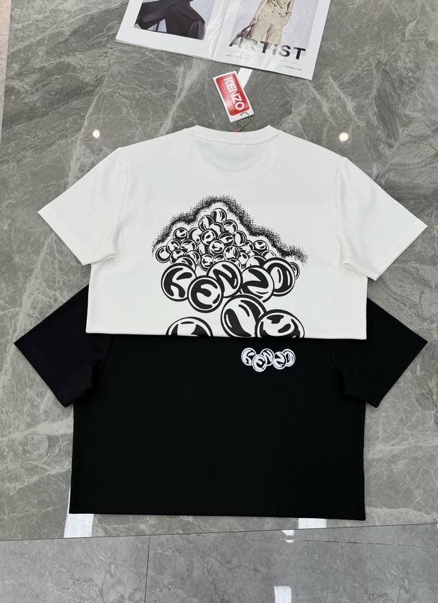 Kenzo X Smiley collaboration T-shirt, made of modal and pure cotton, comfortable and breathable. The front features a Smiley graphic overlaid with the Kenzo logo, exuding a trendy and artistic vibe. The black and white color scheme is fresh and versatile, with the black version being cool and stylish, easily adaptable to everyday casual wear. Suitable for all body types, it looks great paired with jeans or sweatpants. Colors: Black , White. Sizes: M-3XL (slim fit), S and 4XL available for custom orders. L is recommended for someone 175cm tall and weighing 140kg.