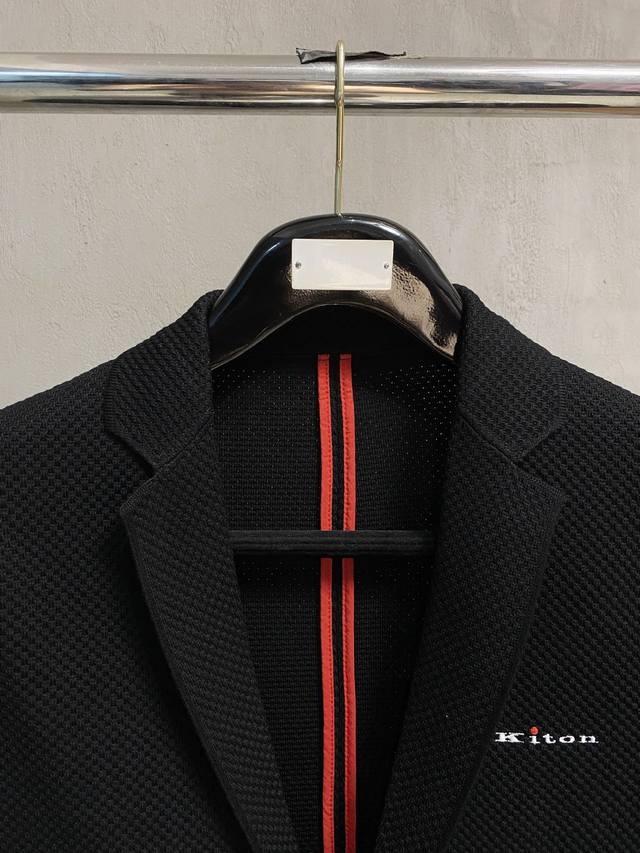 Kiton 25Fw New Fall Men's Business Casual Knitted Wool Blazer, Single Blazer. High-end, ready-to-wear collection! This functional, treasure-worthy piece combines fashion and design, creating a unique look. The overall silhouette tends to be minimalist, and the distinctive lettering embroidered logo design on the chest adds a unique and elegant touch, enriching the overall look.