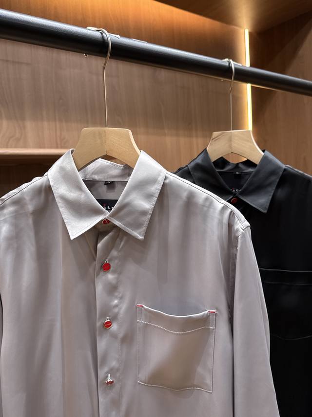 Kiton25Fw's new early fall styles are here! Silk tech cotton lapel shirt! Men's classic red casual long-sleeved shirt with metal buttons. Available only through trading companies and now on the official website! Some outfits are like the understated gentleman, seemingly ordinary but with hidden gems. This silk shirt is a standout! The unique red buttons are the finishing touch, captivating countless men.