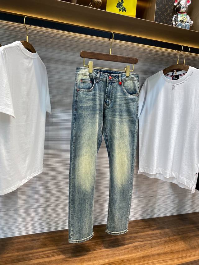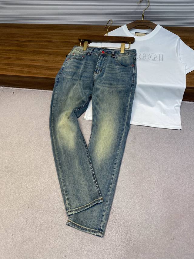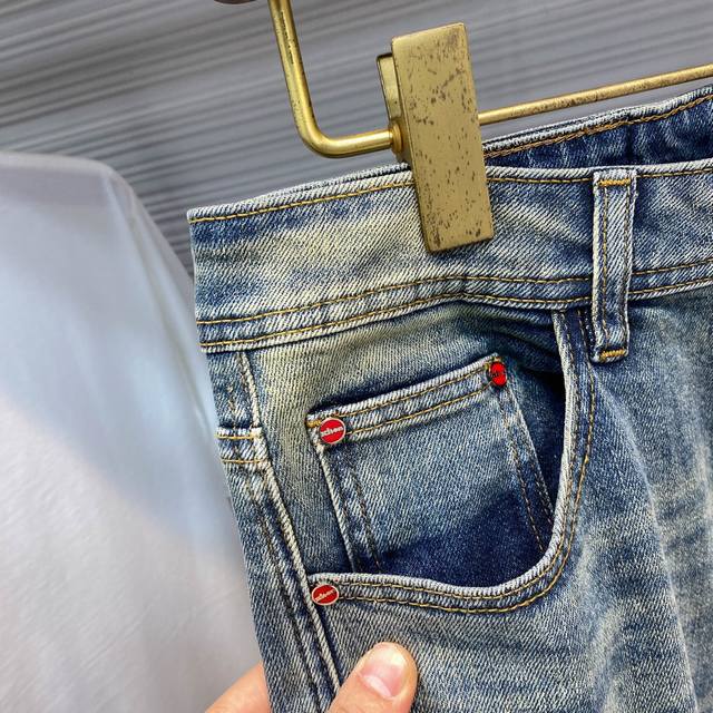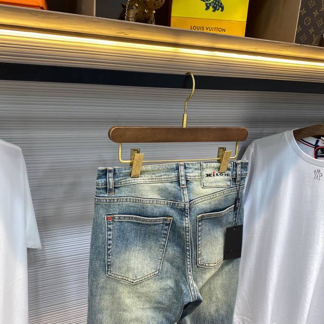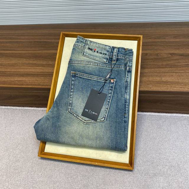 Kiton25's new, stylish, retro-washed, nostalgic jeans for all seasons. Men's straight-leg, slim-fitting, casual denim trousers with a red metal nameplate! Available only through trading channels, now available on our official website! A predictable bestseller, these jeans, driven by fabric and craftsmanship , break away from traditional styles and tones for a minimalist aesthetic. They're pure, clean, and versatile, perfect for both business and casual wear, effortlessly stylish and stylish, exuding a powerful presence.