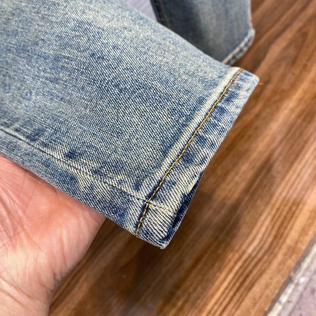 selects premium imported denim fabric from Japan, using 13oz authentic Okayama denim. A heavyweight, eco-friendly plant enzyme wash creates a beautiful, subtle vintage hue. The washed fabric is soft and delicate, yet incredibly muscular and slightly stretchy, offering exceptional comfort. No artifacts mar the denim's purest character, preserving its natural, natural look. Perfectly inheriting the new season's elements, the updated leather waistband highlights the brand's unique identity. Combined with elegant brand elements, it highlights the quality of the details. The signature twist buttons of the season add a touch of visual interest, creating a stylish and modern look. This exquisitely crafted pair not only highlights the brand's identity but also creates an overall sense of luxury and sophistication. The perfectly tailored silhouette offers a perfect hip-lifting and slimming effect, easily complementing any wardrobe top. Its versatile fit is perfect for everyday wear, providing a stylish and versatile look. A must-have for quality-conscious denim enthusiasts and denim aficionados! Size: 29-38 No 35