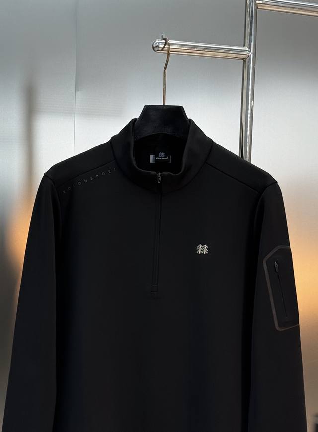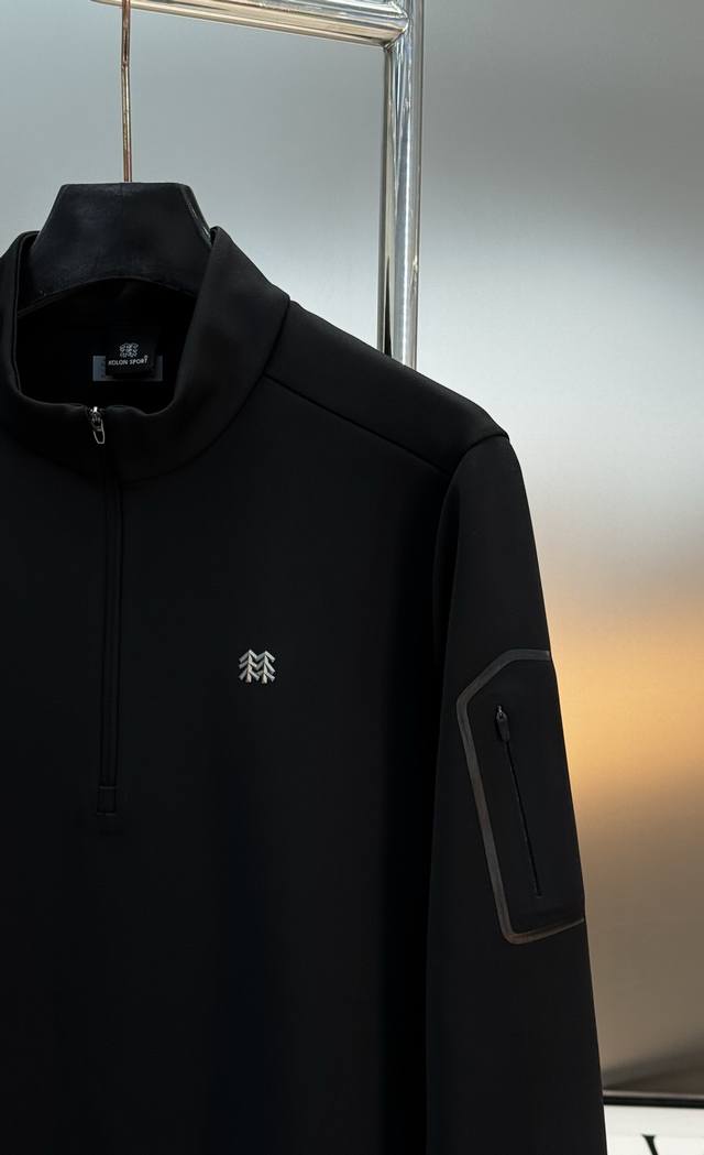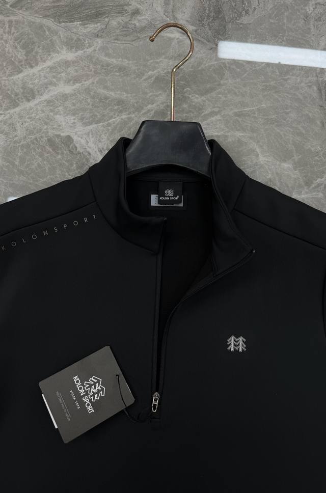 Kolon Sport Half-Zip Long-Sleeve T-Shirt, made with specially customized professional outdoor fabric. The micro-brushed fabric is soft and skin-friendly, quick-drying and warm, perfect for autumn and winter wear. The half-zip design makes it easy to put on and take off, the stand-up collar provides neck protection, and the cuffs and hem are elastic for a comfortable fit without being too tight. Black is simple and versatile, while gray-green is understated and sophisticated, catering to different body types. Suitable for both outdoor sports and daily commutes. Sizes: M-3XL. Recommended size: L (for someone 175cm tall and weighing 140kg).