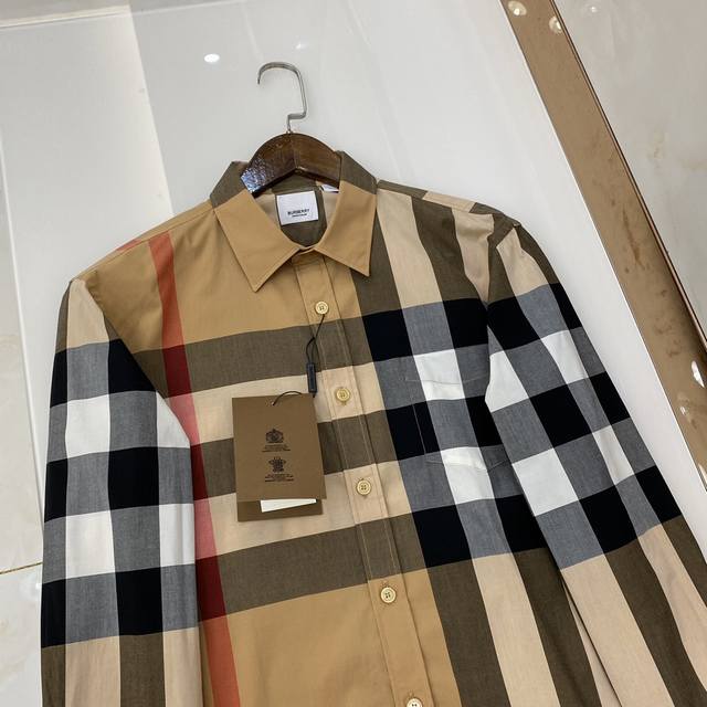 Large checkered long-sleeved shirt, stretch cotton poplin fabric, slim fit, suitable for all seasons, shopping agent-level, no pressure to enter and exit the counter! Impeccable, S, M. L. Xl. Xxlfbl