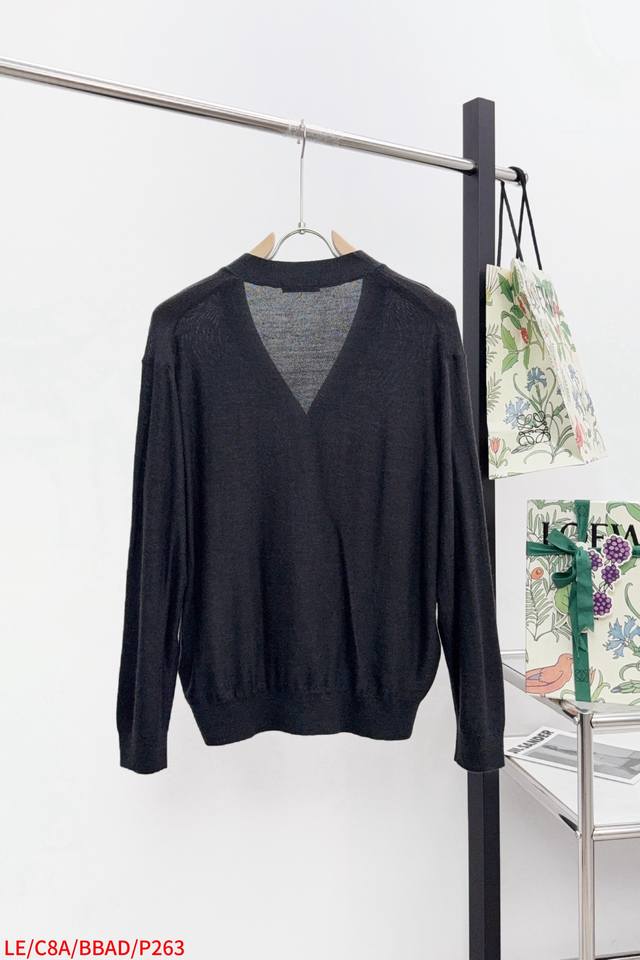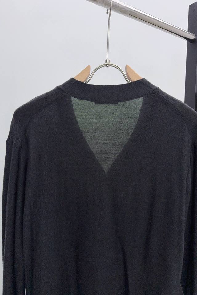 Lemaire 25Ss new single-breasted V-neck long-sleeved sweater for men, black . S
