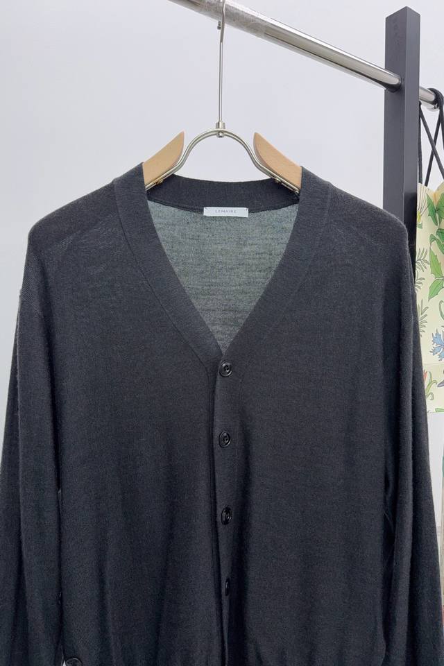 Lemaire 25Ss new single-breasted V-neck long-sleeved sweater for men, black