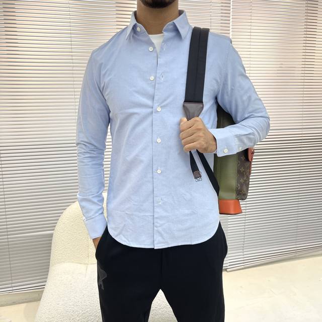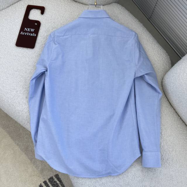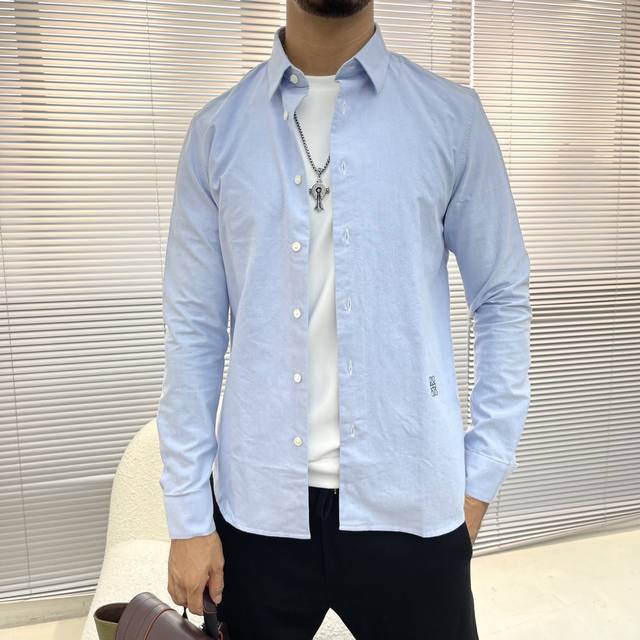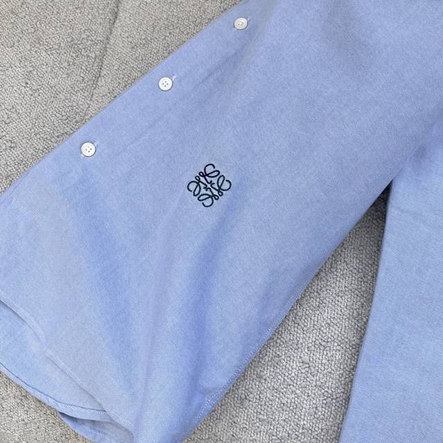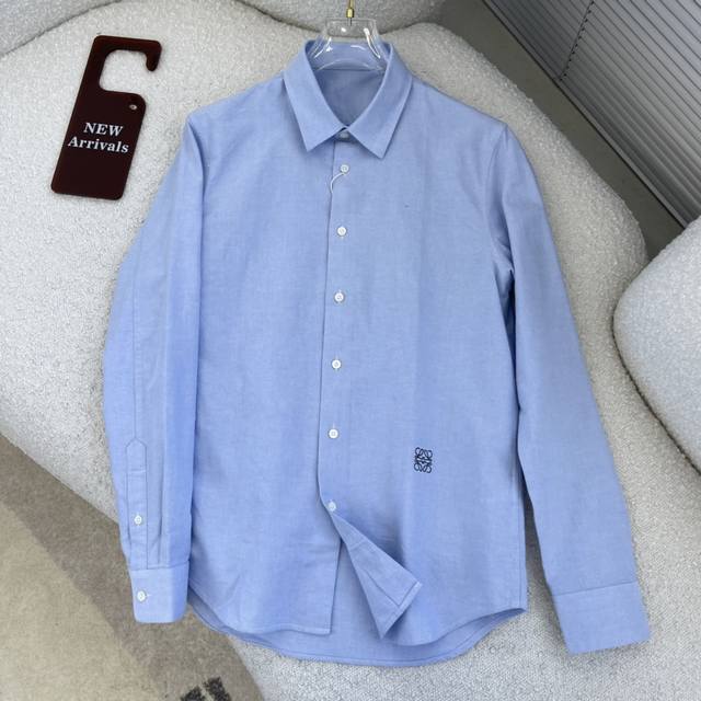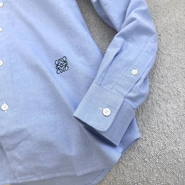 Loew embroidered contrasting logo Oxford shirt. A versatile style with visible buttons, made from custom-woven cotton Oxford fabric with mother-of-pearl buttons for a premium feel. Colors: White and light blue. Sizes: 38-42 S-XXL.