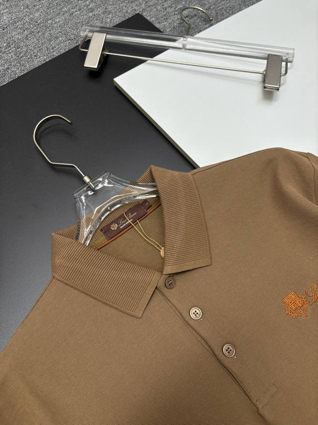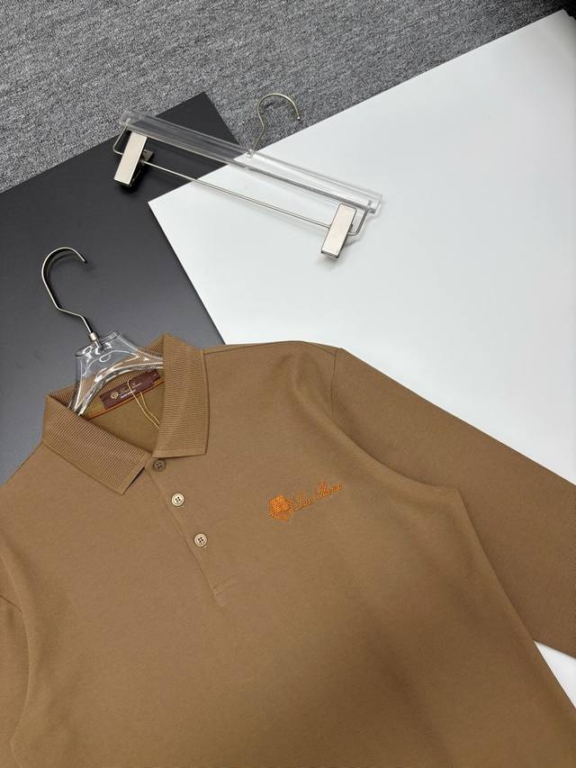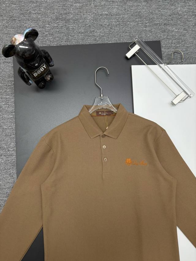 Loro Piana New Embroidered Long-Sleeve Polo Shirt DDD Original Fabric, Official Same Style DDD Made of 250g Pure Cotton Piqu