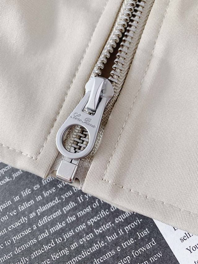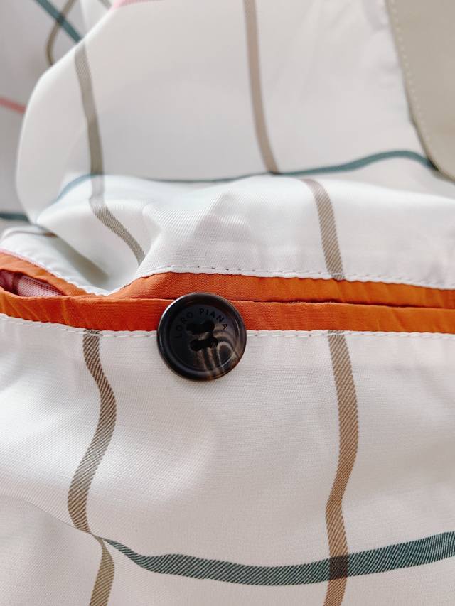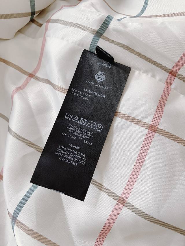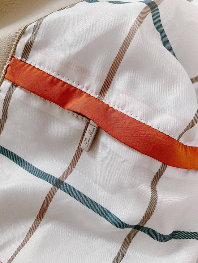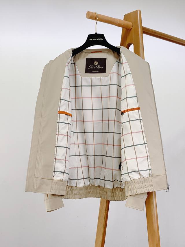 top features a sleek lapel design, with the brand's logo engraved on the zipper and buttons, each detail embodying the meticulous craftsmanship of luxury. The plaid lining and contrasting colors create a subtle, sophisticated look. The bottoms are a simple, elegant straight-cut silhouette with an elastic waistband for comfort and style. The brand's metal details add a touch of understated luxury. Made from a blend of 82% cotton and 18% Tencel,