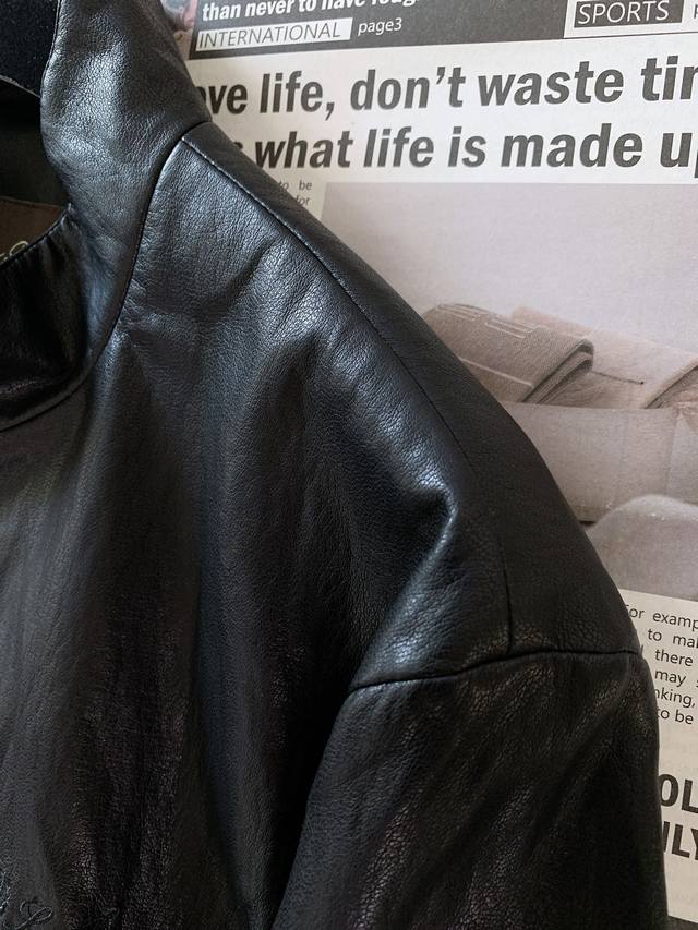 Classic black Lp leather jacket, Italian origin, texture hidden in every place