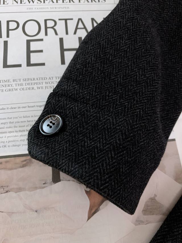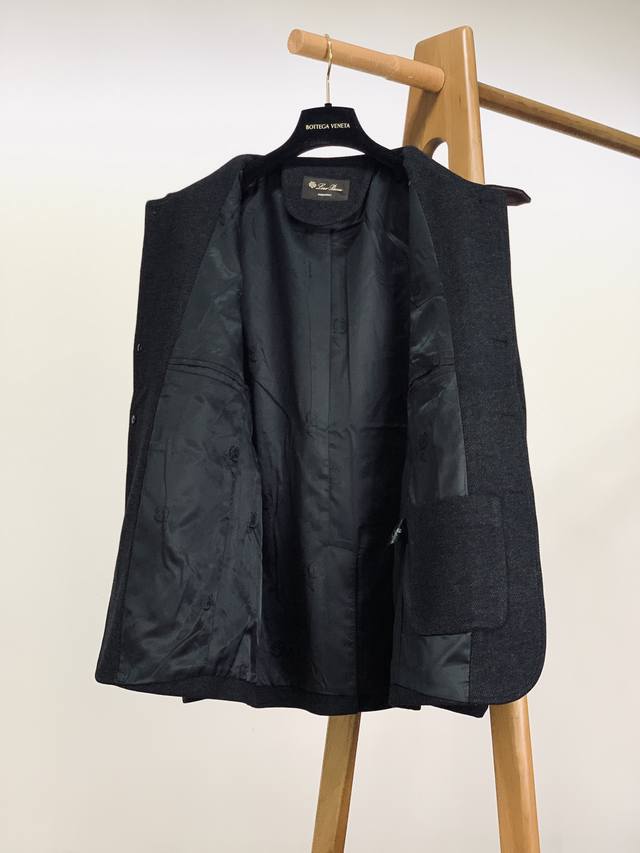 branded buttons, intricate back embroidery, and a delicate lining embody L.p's unwavering dedication to quality, from the large silhouette to the smallest details. The crispness of the wool and the softness of the blend create a piece that balances formal elegance with casual everyday wear, making it a stylish piece that can be worn all season.
