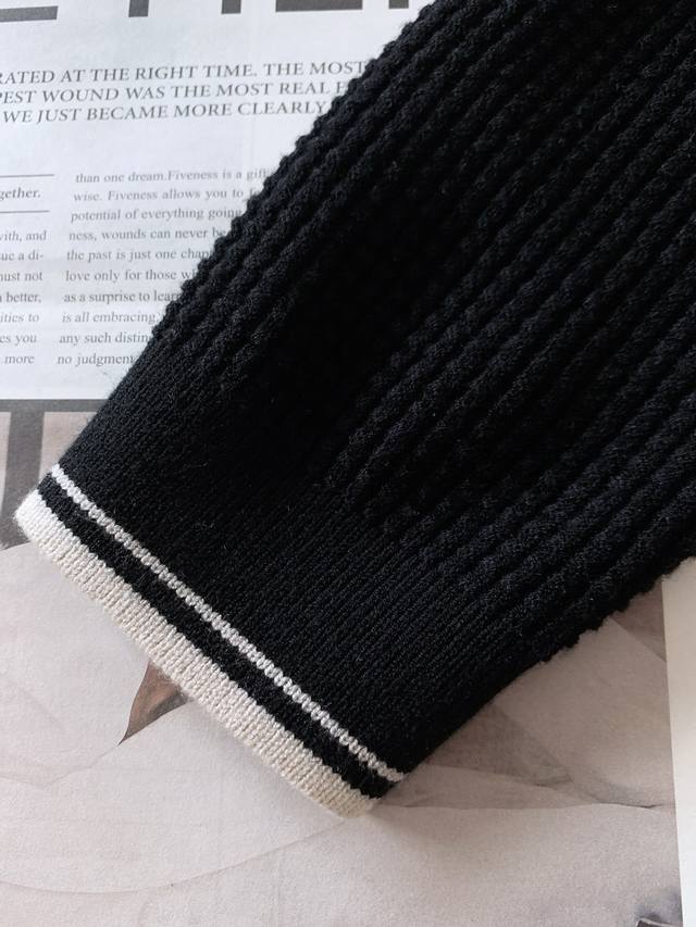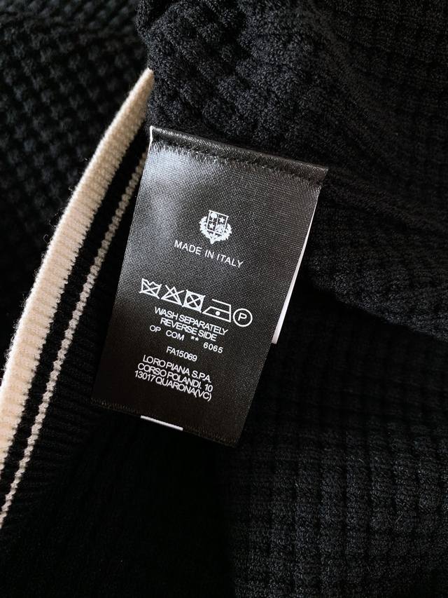 . Crafted from premium knit fabric with a delicate, three-dimensional waffle texture, it feels cloud-soft against the skin, offering both warmth and breathability. Contrasting stripes on the collar and cuffs add a touch of movement to the minimalist silhouette, while delicate brand embroidery on the chest underscores the brand's Italian luxury credentials.
