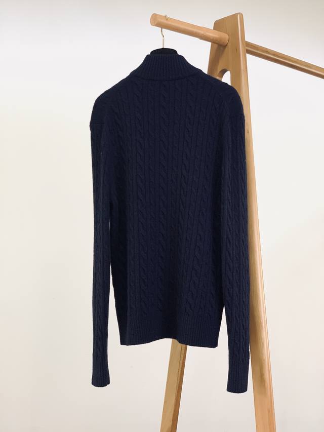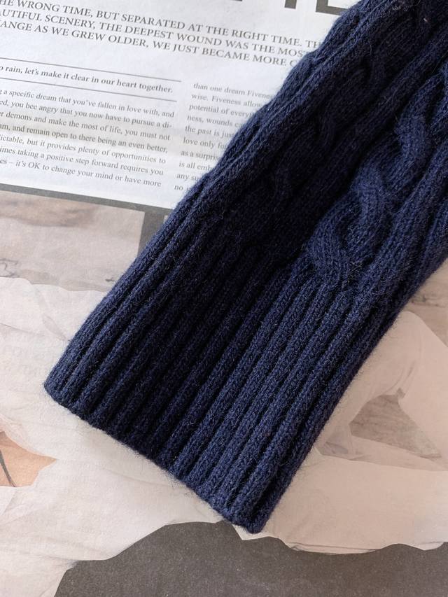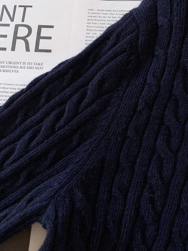 100% wool cable knit creates a warm feel in early autumn weather.
