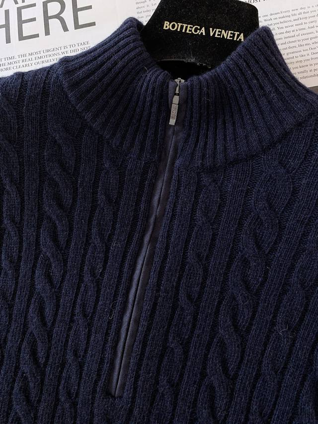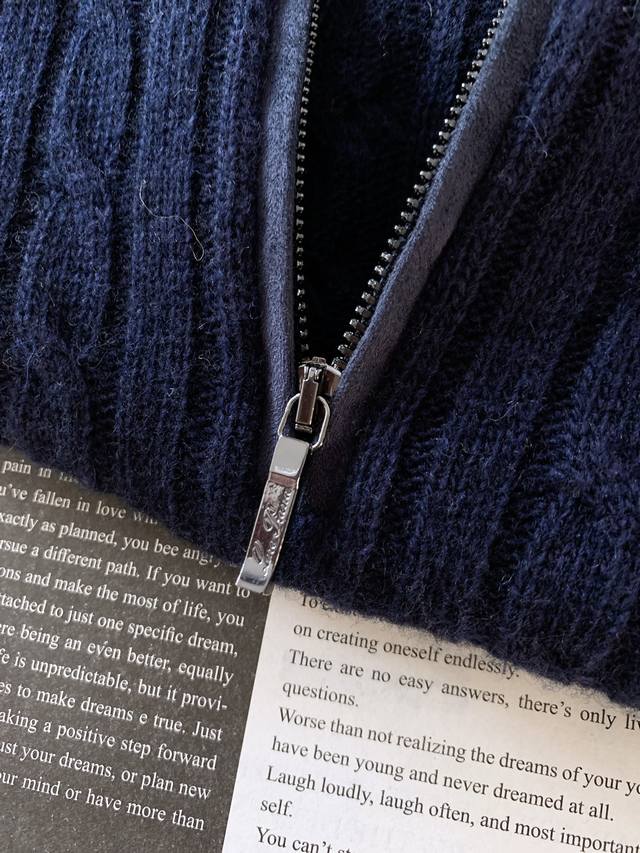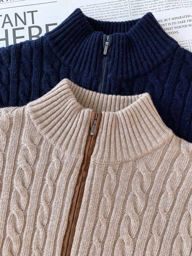 Premium neutral cashmere zippered stand-up collar provides comfort.