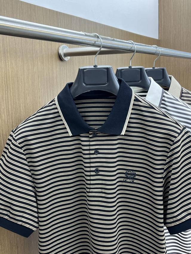 Lp exclusive custom craftsmanship, counter synchronization 2025Ss summer new products, men's classic logo on the chest business casual contrast collar short-sleeved Polo shirt! The trading company channel is rare, and it is sold at the same time as Gw! The visual is quite exquisite and beautiful, highlighting the brand characteristics, with high recognition and fashionable feeling. The overall design interprets minimalism to the extreme, simple and generous! The 100% imported cotton is selected from customers. The fabric feels soft, waxy and thin, with an unparalleled comfortable texture, close to the body, dry, skin-friendly and highly breathable. The simple stand-up collar design modifies the neck line and highlights the capable and neat temperament. The loose version is tolerant to the body shape and there is no sense of restraint when wearing it. The classic logo embroidery on the chest of the body is embellished with the jacquard knitted thread of the brand letter logo on the back collar. Length 68 Sleeve Length 22