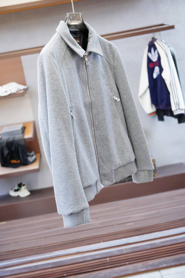 Lp, Italian luxury new arrivals with a vintage feel, featuring a series of stand-up collar jackets. The 2025 Fall/Winter collection features refreshing twill weaves and multiple blends, each with a brushed, three-dimensional feel and texture. The fabric is smooth to the touch yet sturdy, and its fine texture effectively repels wind and water. The detachable hood and lining, combined with the stand-up collar, allow for effortless switching between casual and casual styles. Detailed craftsmanship, contrasting suede trims , double-stitched quilting, and the contrasting Napoli logo create a minimalist and luxurious look. Colors: Khaki, Black, Gray. Sizes: M-3Xl. #Le56906.