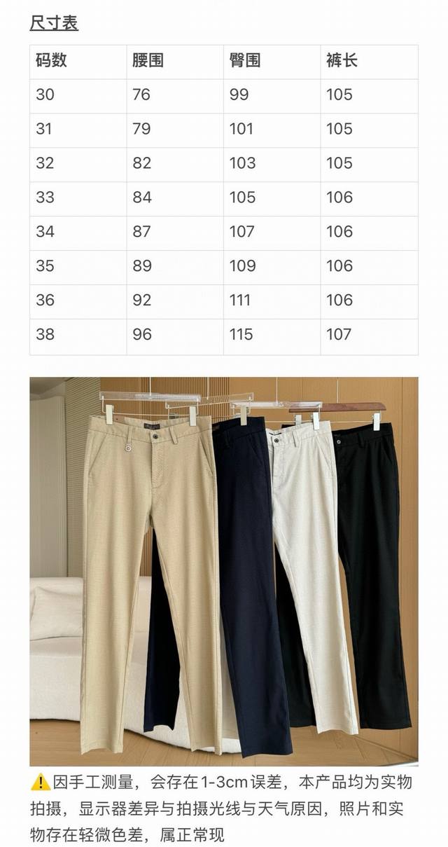 Lp Loro Piana Blended Cotton-Linen Casual Straight-Leg Pants DDD High-end draped cotton-linen trousers, slim-fit casual trousers for spring and summer business commuting, creating a wardrobe staple. Elegant design embodies timeless beauty, seamlessly transitioning from the office to evening events. DDD Loro Piana trousers embody exquisite tailoring, telling a story of heritage and innovation with exceptional cut and luxurious materials. These high-waisted trousers are crafted from a luxurious blended cotton-linen fabric, with a relaxed leg front adorned with pleats DDD The waistband design harmoniously blends the button front and elastic back. DDD An internal pocket is located at the seam above the hips DDD A flap back pocket DDD The waistband features horn buttons and hooks DDD Custom-molded buttons and a YKK zipper at the placket, with high-end accessories and features expected of a quality product DDD The lining is fully bound for a smooth finish and to prevent unraveling! DDD Every detail is solid and exquisite! These are all high-quality items! Available in four colors: black, navy blue, white, and khaki. Fabric: Custom-supplied blended cotton and linen fabric with a slightly textured surface. Soft, delicate, drapes well, wrinkle-resistant, elastic, super comfortable, skin-friendly, and stylish without being bulky! Get yours and experience it for yourself! Classic straight-leg cut, lightweight and practical, adaptable to various body types, flattering and elongating the legs, exuding a confident aura. Perfect for everyday casual wear and commuting! Plus, the price is incredibly attractive! What are you waiting for? Buy it now! Sizes: 29-40