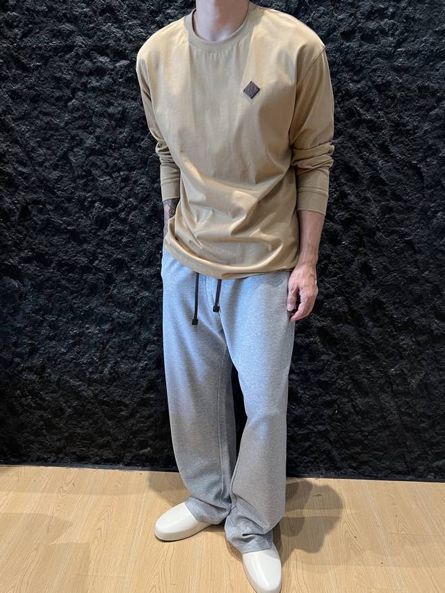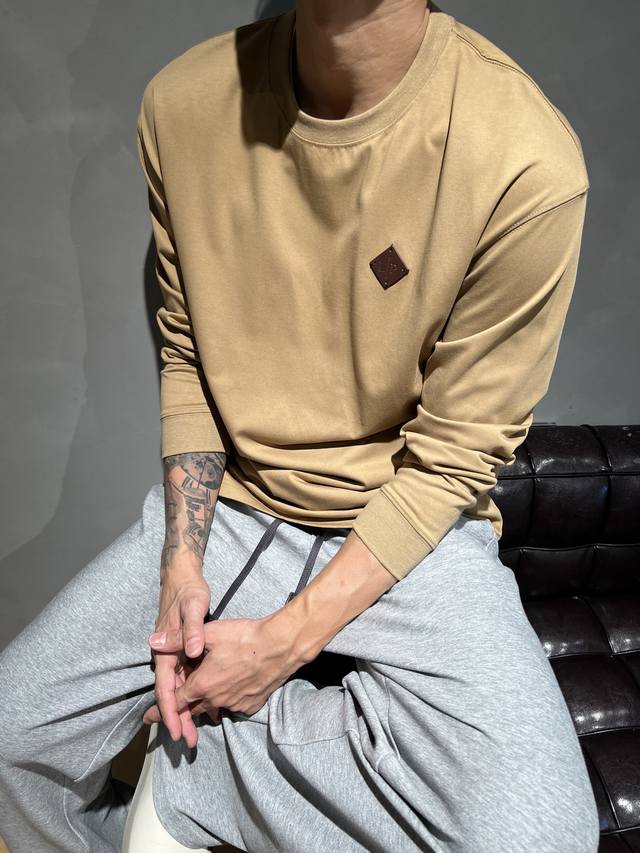Lp The new early autumn four-corner leather label logo round neck loose casual long-sleeved T-shirt is amazing.