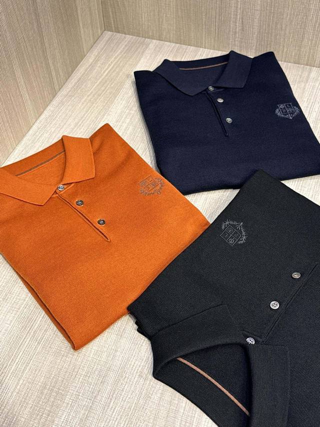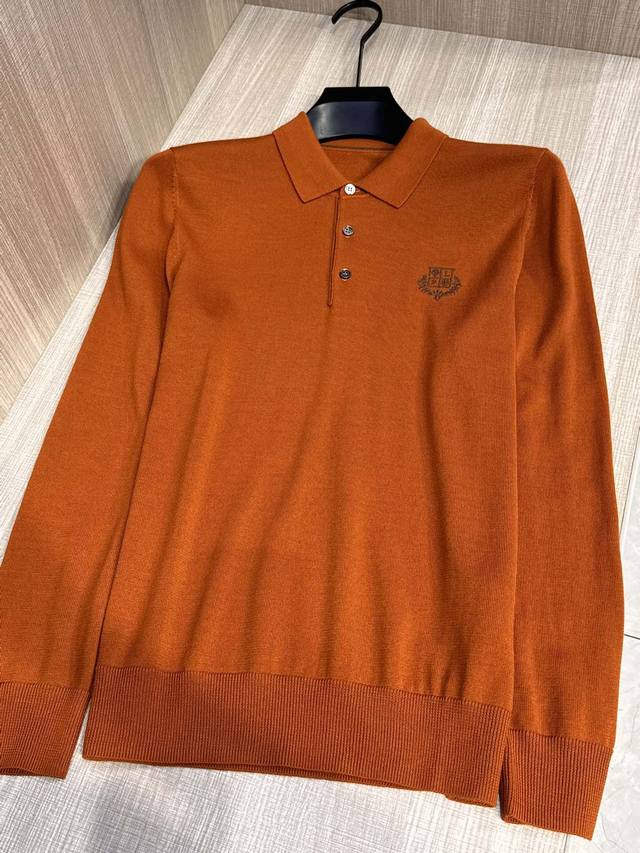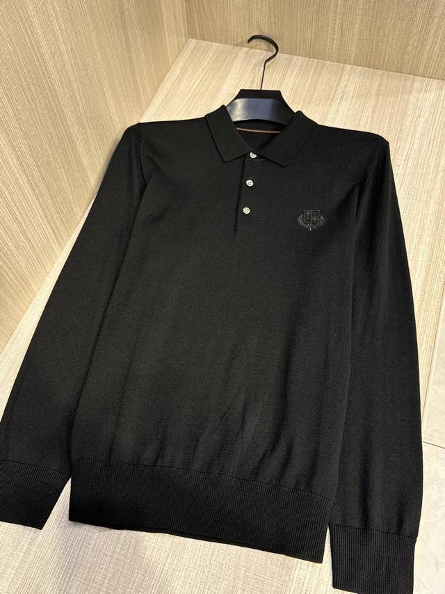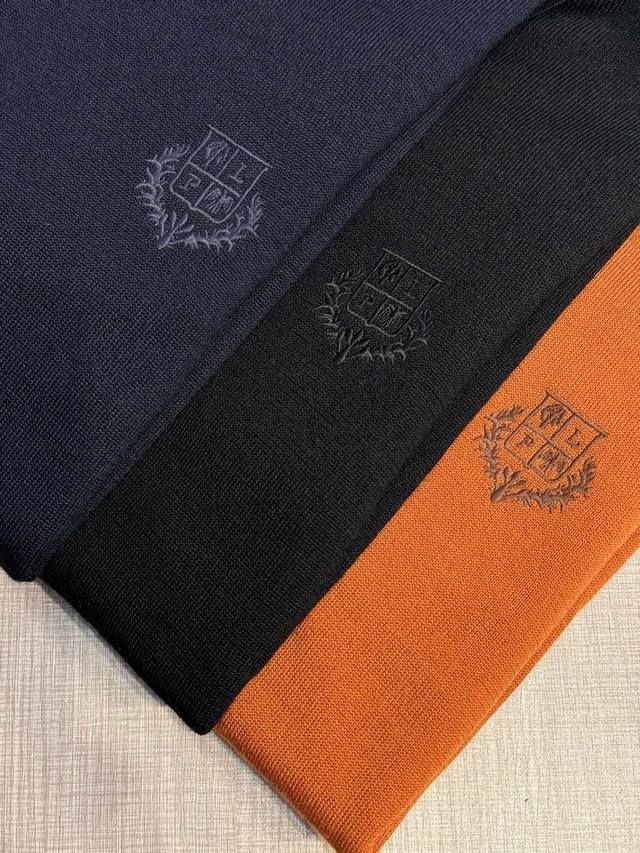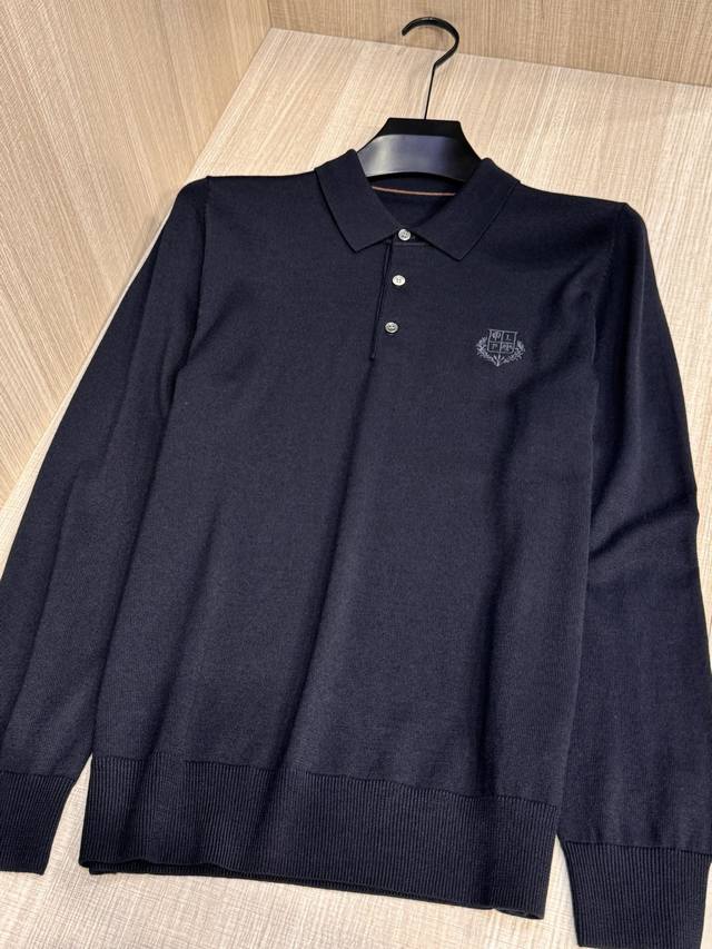 Lp's latest Autumn/Winter 2025 classic men's lapel long-sleeved sweater with embroidered monogram logo. Crafted from imported pure wool, this 60s worsted sweater features a 16-needle, dense stitch for a lustrous, high-end luxury. Its comfort level surpasses ordinary sweaters, offering a softer, more delicate feel, a comfortable, skin-friendly feel, excellent stretch, and a non-restrictive feel. It maintains a crisp, stylish silhouette and resists wrinkling or deformation. The traditional polo collar design offers a simple and elegant, lightly business-inspired style. The signature monogram logo embroidered on the chest complements the color scheme, creating a refined and three-dimensional effect. While seemingly understated, this sweater offers a distinctly sophisticated feel and strong brand recognition. This stylish and versatile sweater is timeless and can be worn alone or as a base layer, embodying a chic, gentlemanly style. Made to export standards, this sweater features meticulous attention to detail, making it a knitted polo shirt you won't want to take off.