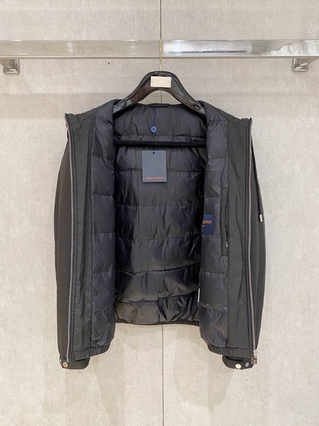 Lujia Autumn/Winter Men's Praz Drawstring Hood Cropped Down Jacket. The Praz Drawstring Hood Cropped Down Jacket is a piece from the Autumn/Winter menswear collection, primarily in black, combining style and practicality. This Praz down jacket features a simple yet elegant black design. Its unique drawstring hood adds a touch of style while providing extra warmth in cold winds. The cropped cut accentuates a masculine look. The jacket is crafted from a custom, thick, stretch-knitted fabric that offers excellent warmth, flexibility, and abrasion resistance. The custom knitting process creates a tighter fit, effectively preventing cold air from entering. The lining is filled with high-quality 90% white goose down, ensuring the jacket's warmth. The predominantly black color scheme makes the jacket a classic and versatile choice, making it a stylish and effortless choice for both formal and casual occasions. Its custom stretch knitted thick warm fabric and unique design style make it stand out among many down jackets and become the first choice for men in autumn and winter.