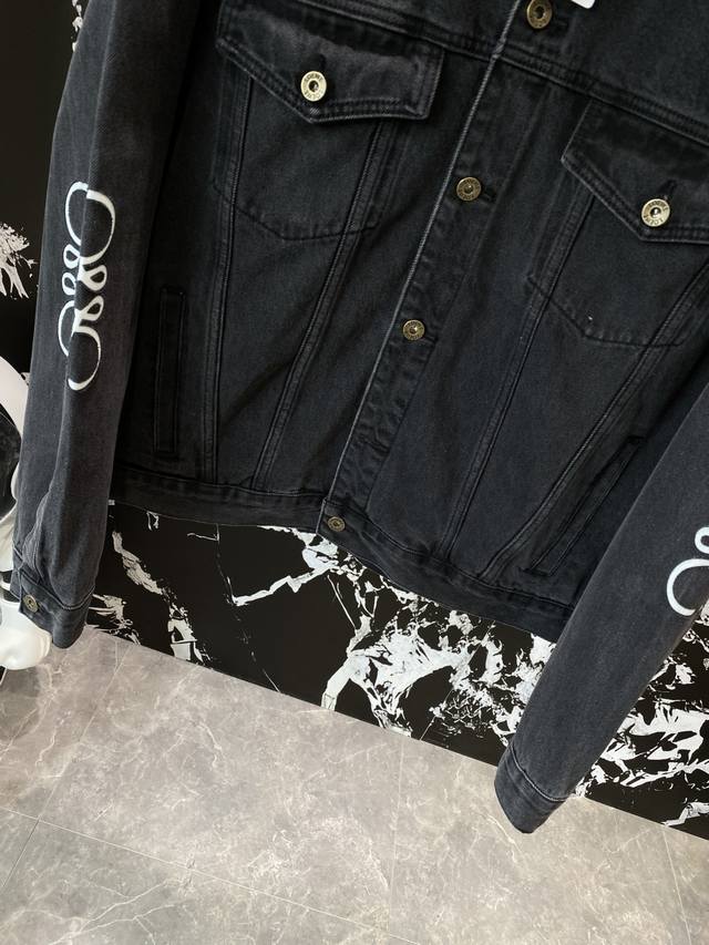 denim jacket is made of imported denim fabric, with double-arm logos and heavy-washed jacket, embellished with hardware buttons, crisp and stylish, and a unique angle to create a new fashion and versatile choice! Size: S-Xl Next day