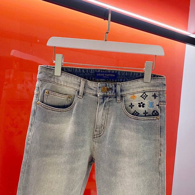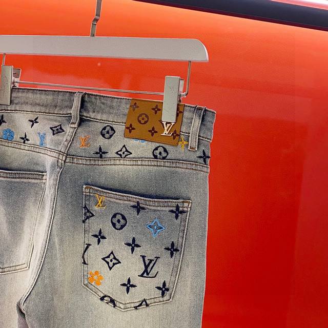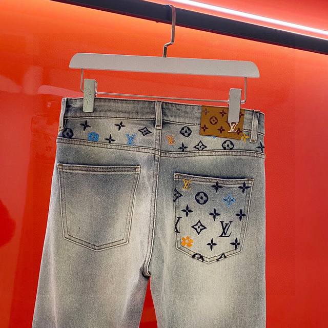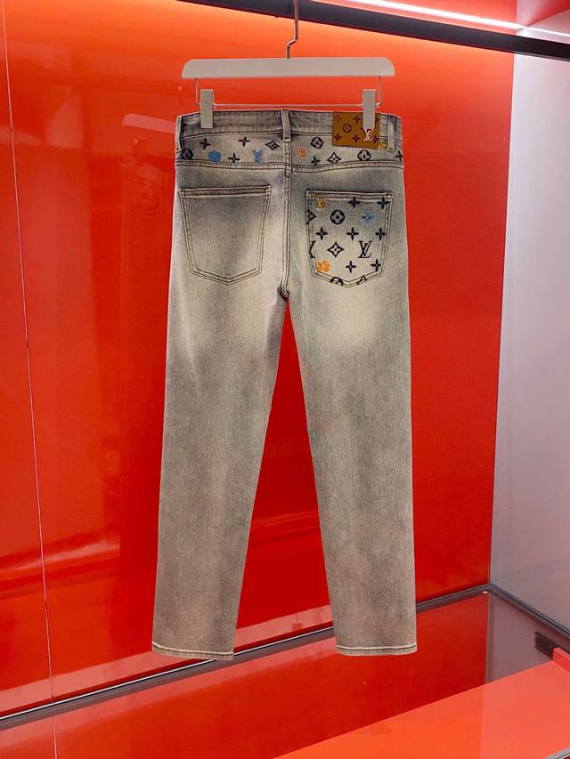 LV 2025 Spring/Summer Men's Jeans! Highly recommended, these trendy men's jeans are a must-have. A basic grey cotton five-pocket style, made from premium denim fabric sourced directly from the brand. The distressed grey wash enhances the jeans' appeal and adds a touch of style. The fabric itself is incredibly soft and lightweight, providing exceptional comfort against the skin. The most striking feature is the embroidered "1V" logo, creating a strong sense of depth. This design not only makes the jeans unique but also showcases the brand's meticulous attention to detail. Effortless styling; even a simple short-sleeved shirt will create a fashionable look! A no-brainer, you won't regret buying these! Sizes: 30-36 (excluding 35). Size 30: Waist 78cm, Hips 102cm, Length 100cm.