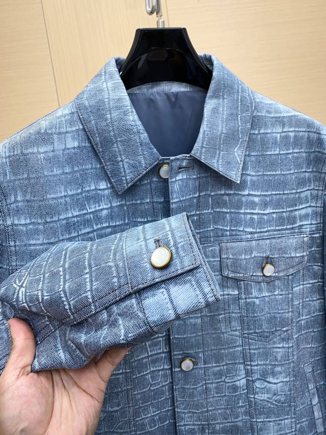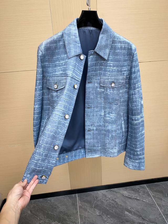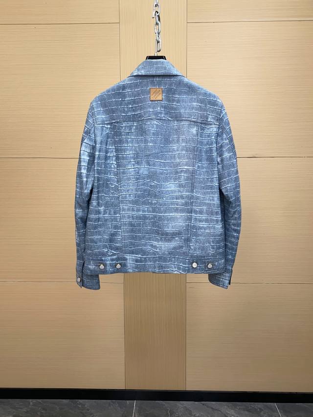 LV 25Fw Outerwear Calfskin Epixl Bomber Jacket This bomber jacket is crafted from calfskin leather and features an all-over hot-stamped Epi Xl motif, inspired by the brand's heritage leather goods. Monogram flower eyelets detail the inner arms, while the signature embroidered appliqu