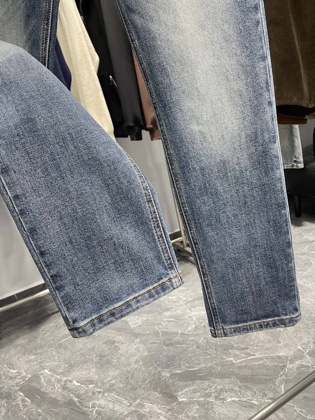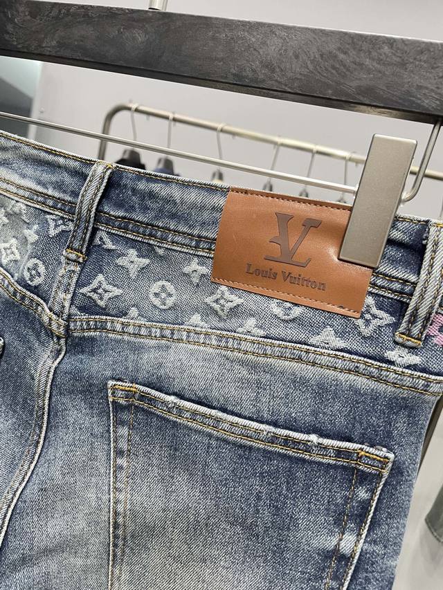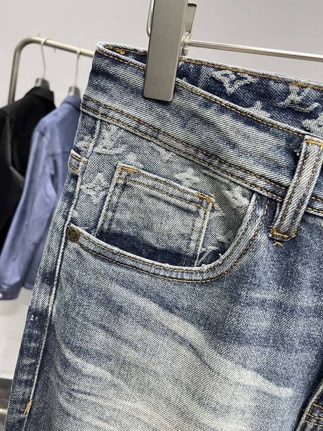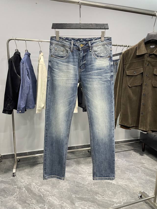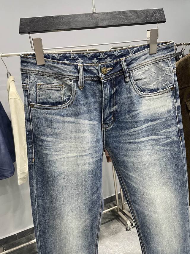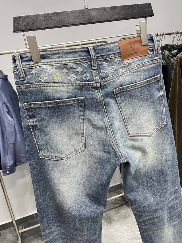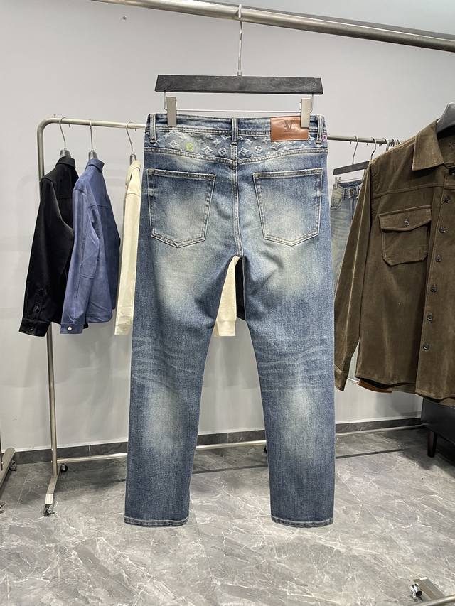 LV25Fw New Fall/Winter Blue Washed and Whitened Denim Jeans, Men's Classic Monog