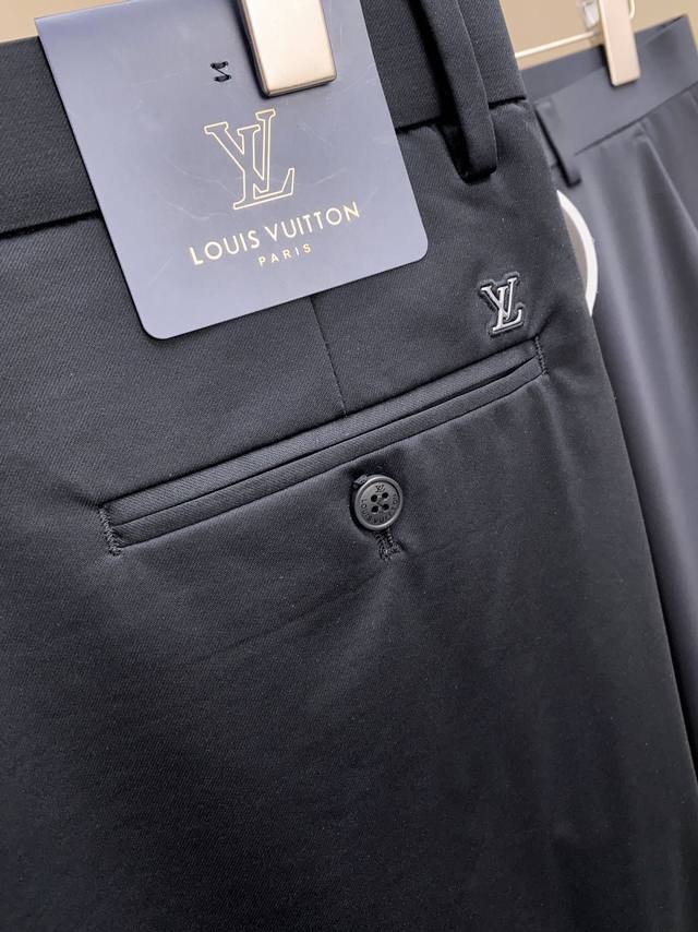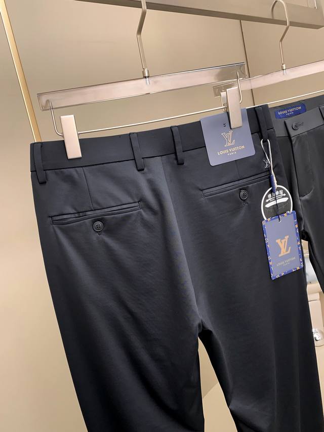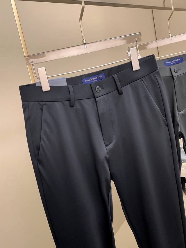 LV25Ss Spring/Summer New Men's High-Quality Business Casual Trousers, a stylish urban elastic waist trouser, exuding gentlemanly elegance and showcasing a casual and natural elegance! Stylish solid color casual trousers, made from selected imported high-elasticity fabric, wrinkle-resistant and wrinkle-free, with excellent vertical lines, a top choice for the sharp and capable man. Exquisite 1V logo on the back pocket, an indispensable simple and versatile piece in your wardrobe, convenient and comfortable to wear, and extremely easy to match with stylish looks. Basic straight-leg cut, unrestricted by body type, incredibly versatile color, easily matching any top, perfectly combining business and casual styles. Colors: Dark Gray, Black. Sizes: 30-38, 35 available, 37 unavailable. Size Reference: Size 31: Waist 80cm, Hips 104cm, Thigh 56cm, Length 108cm, Leg Opening 34cm.