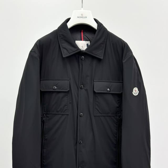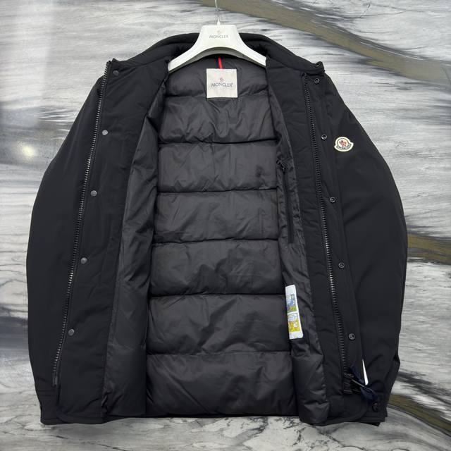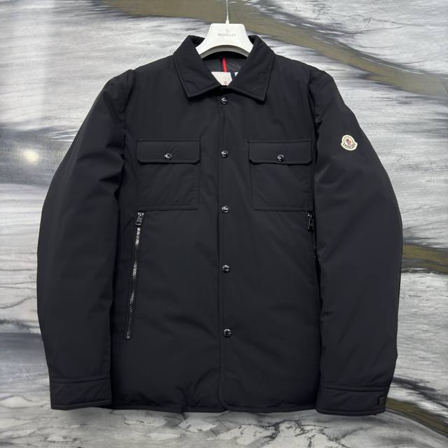 M0Ncler Casual Zipper Solid Color Lapel Down Jacket Men's Black Filling