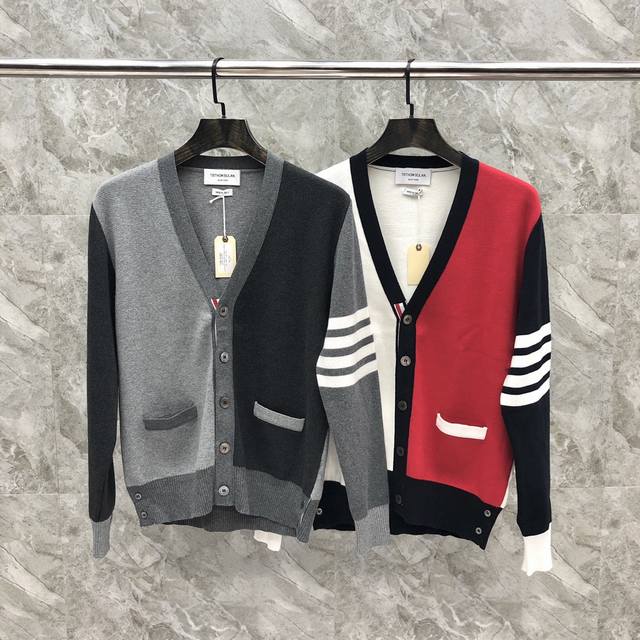 Macaron veil colorblock cardigan Color: blue, white, red, gray Size: 1-4