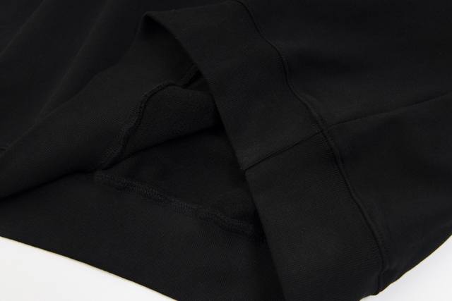 Custom-dyed pure cotton sweatshirt fabric, black is all made of reactive black, 1% shrinkage rate, to ensure that the finished garment is not easy to shrink or deform, and maintain long-lasting beauty