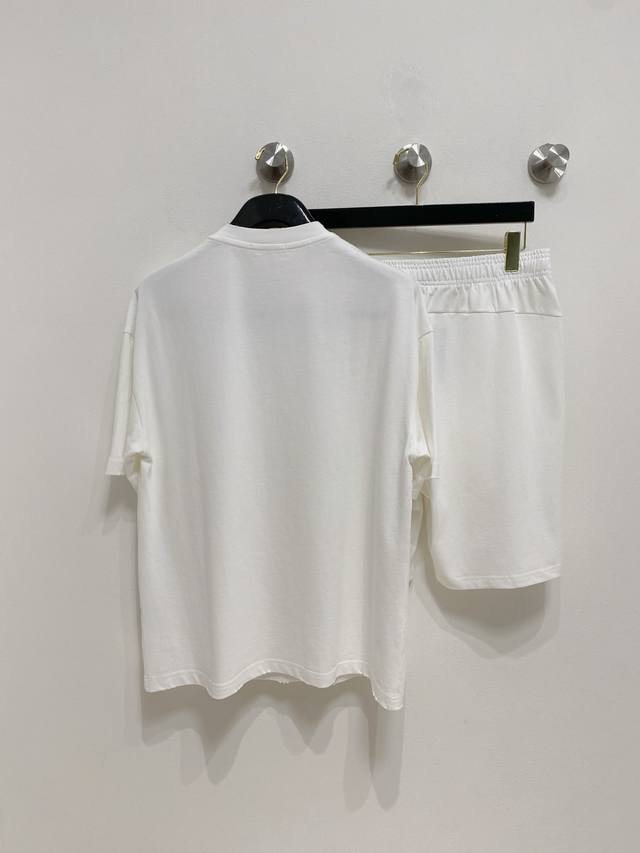 Margiela high-end customization 2025 spring and summer new models first release in the counter, the latest short-sleeved shorts, casual trendy men's suits, heavy-duty concave and convex pattern design, collar and sleeves with hole design, high-end custom design, avant-garde fashion brand Logo, heavy craftsmanship design, high-end custom cotton fabric. Soft to the touch. Comfortable to wear. Counter-level exquisite sewing. Fine workmanship. The upper body effect is invincible. A must-have item for handsome men.