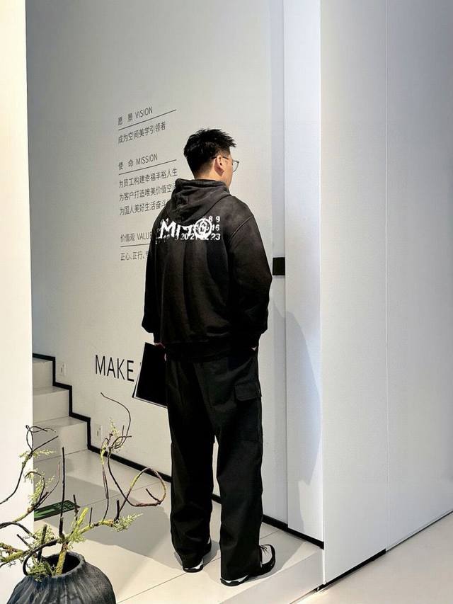 Margiela's official website features a new double-layered monogram print. Whether it's a T-shirt or a sweatshirt, it's a yearly hit. The large front panel is printed directly on a Dakangli digital printer, which is extremely expensive. After numerous adjustments, the pattern's color reproduction is nearly 99% identical to the original, unlike the garbled offset printing versions on the market, which are extremely time-consuming. The fabric is custom-dyed using 400g double-stranded cotton. S-XL sizes can be worn oversized, 220 kg.