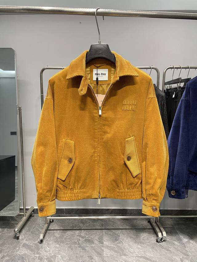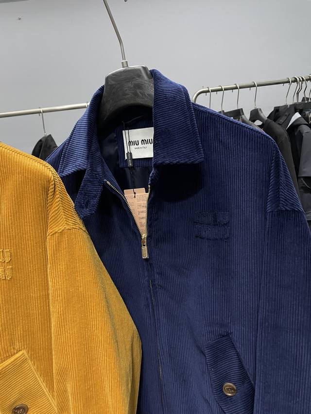 Miu 25Fw's new fall/winter corduroy cotton jacket with a vintage lapel. This stylish short zipper jacket features a classic logo patch and embroidery. Available now through the Miu trading company and on sale on the official website for 30,970 RMB! The Miu vintage corduroy jacket has become a fashion icon with its unique fabric, exquisite embroidery, sophisticated zipper design, and classic fit. Made from a carefully sourced imported corduroy cotton blend, this jacket features a distinctly ribbed surface. A gentle touch reveals a softness with a subtle touch of crispness. Unlike ordinary fabrics, this jacket exudes a nostalgic, time-honored feel, transporting you back to a bygone era filled with stories and sentiments. The simple yet sophisticated logo patch embroidery on the chest creates a smooth and delicate pattern, each letter appearing like a meticulously crafted work of art. The interplay creates a unique and harmonious visual effect. Without too many complicated decorations, this simple way of showing off the brand's unique charm! The two-way zipper closure with pale gold lettering on the placket is the finishing touch of this jacket! The light gold luster shimmers charmingly under the light, neither too flashy nor too subtle, yet perfectly showcasing the exquisite details! The retro short lapel jacket style cleverly blends retro and modern elements. The short design can lengthen the legs, making the wearer look taller and more upright! The lapel design adds a touch of elegance and sophistication, whether paired with jeans or casual pants, it can easily create different styles! Breaking down gender boundaries, this jacket allows people of all genders to find their own fashion style!