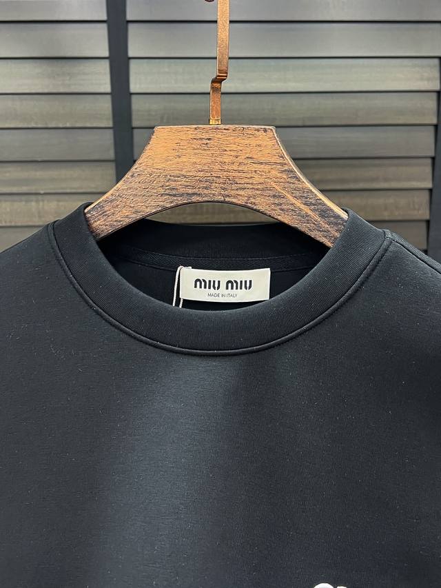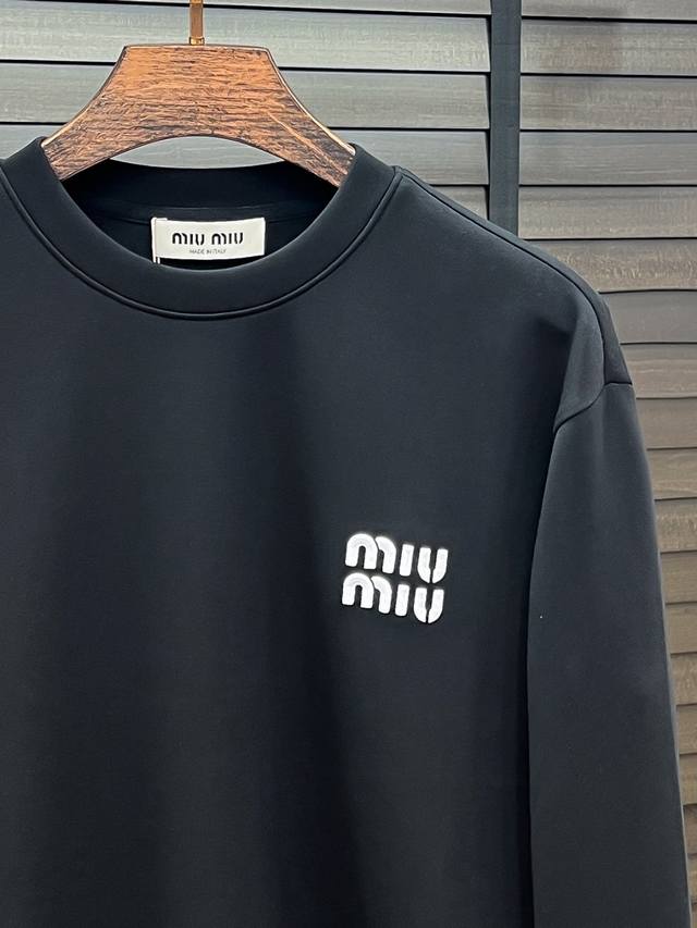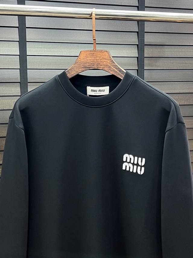 Miu Miu# 25 Autumn/Winter Miu Miu Air Layer Crew Neck Sweatshirt DDD Unisex Fashionable Casual Pullover Sweatshirt! Rarely available from trading company channels, ahead of official website release! Always a unique and highly recognizable brand, Miu Miu consistently creates stylish pieces with a minimalist style. It's suitable for all ages and genders, easy for anyone to wear! The basic casual crew neck cut is slimming and flattering, suitable for various casual outfits. It's unisex and highly recommended! DDD This sweatshirt is made from imported air layer knitted cotton fabric, which is lightweight, delicate, and soft to the touch, while maintaining excellent crispness. The inner lining features a tightly arranged terry loop texture, providing warmth and breathability without any prickly feeling. The cuffs and hem are finished with matching dyed knitted ribbed trim, making the wearer even more stylish and handsome! The front of the garment is decorated with a pattern, meticulously printed using top-tier craftsmanship and adorned with brand embellishments, showcasing both luxury and style! Colors: Black, White Sizes: S, M, L, XL