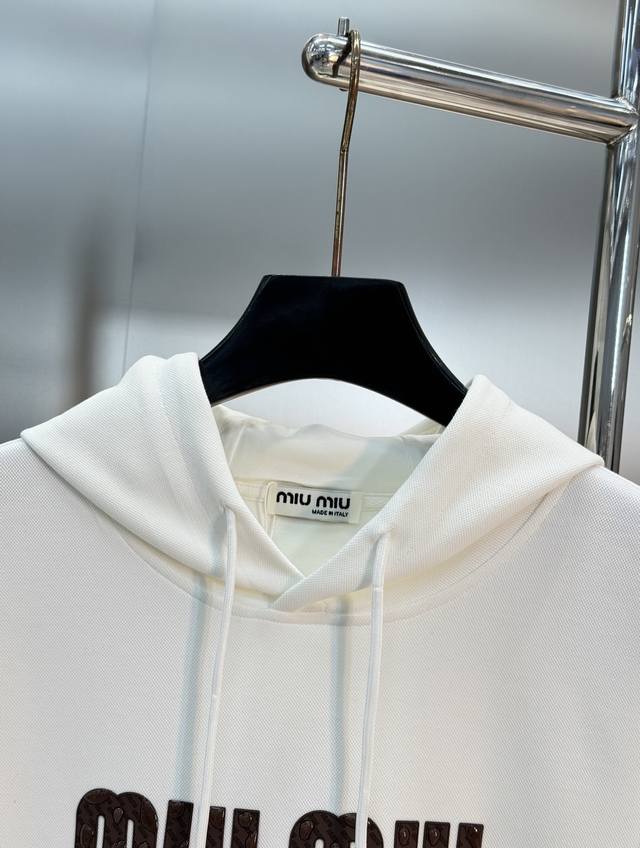 Miu Miu 25S New Hooded Sweatshirt, made from select Tencel fabric, soft pure cotton material, comfortable and breathable to wear. The front features a simple and stylish teardrop-shaped logo print, highly recognizable. The hood and drawstring design offer a casual feel, and the loose fit is very forgiving. Perfect for wearing alone or layering in spring and autumn. Easy to wear for everyday outings, photoshoots, and commuting, practical and brand-name. All three labels are present! Colors: Black, White. Sizes: M-3XL (slightly flared fit). Recommended size: L for 175cm, 145kg.