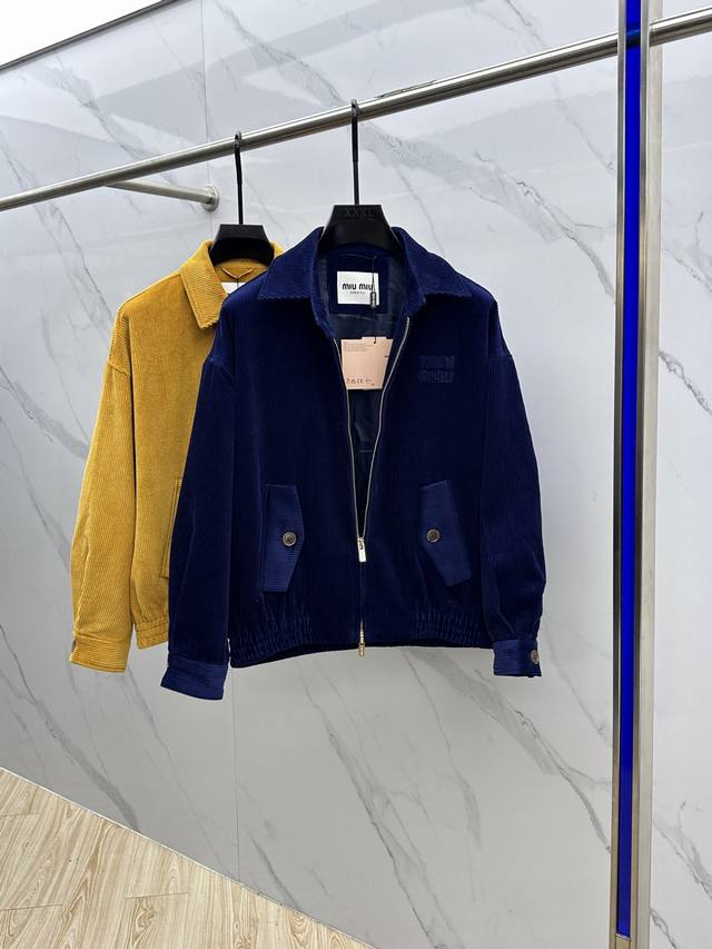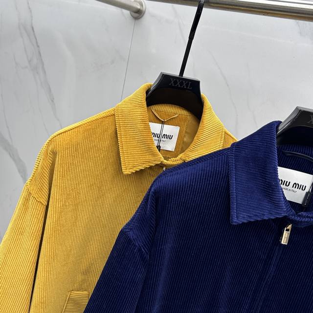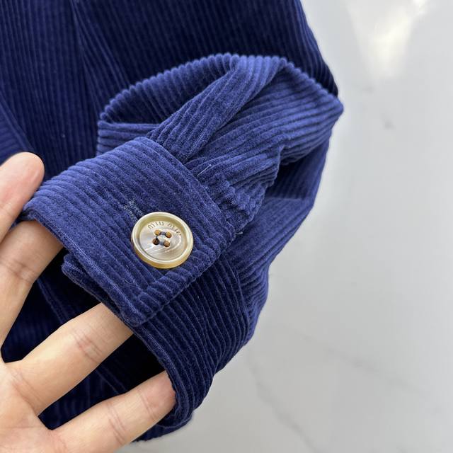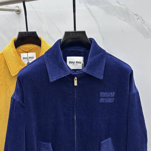 Miu* Miu Miu Autumn/Winter 25Fw new corduroy cotton lapel, unisex classic appliqu