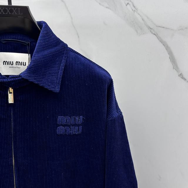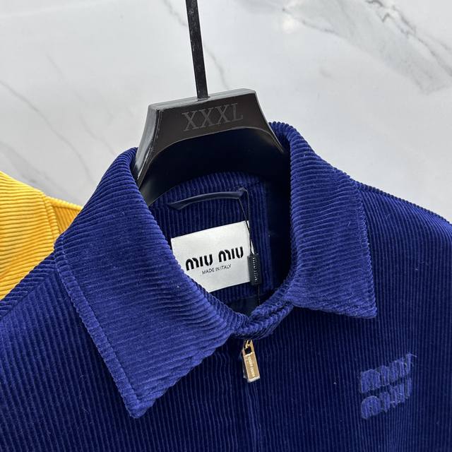 / Miu* Miu Miu Autumn/Winter 25Fw new corduroy cotton lapel, unisex classic appliq