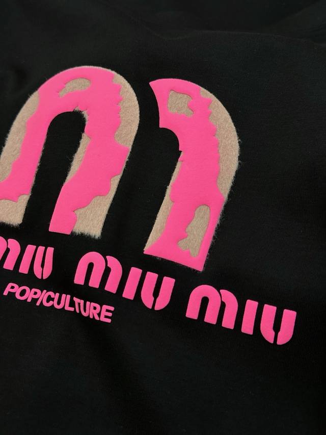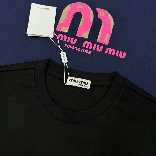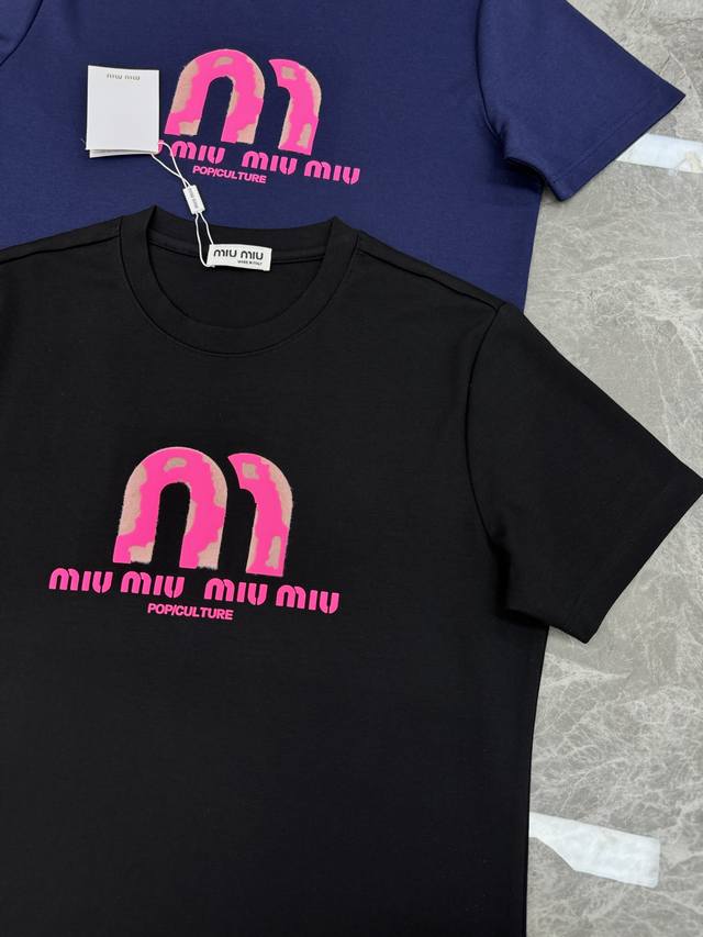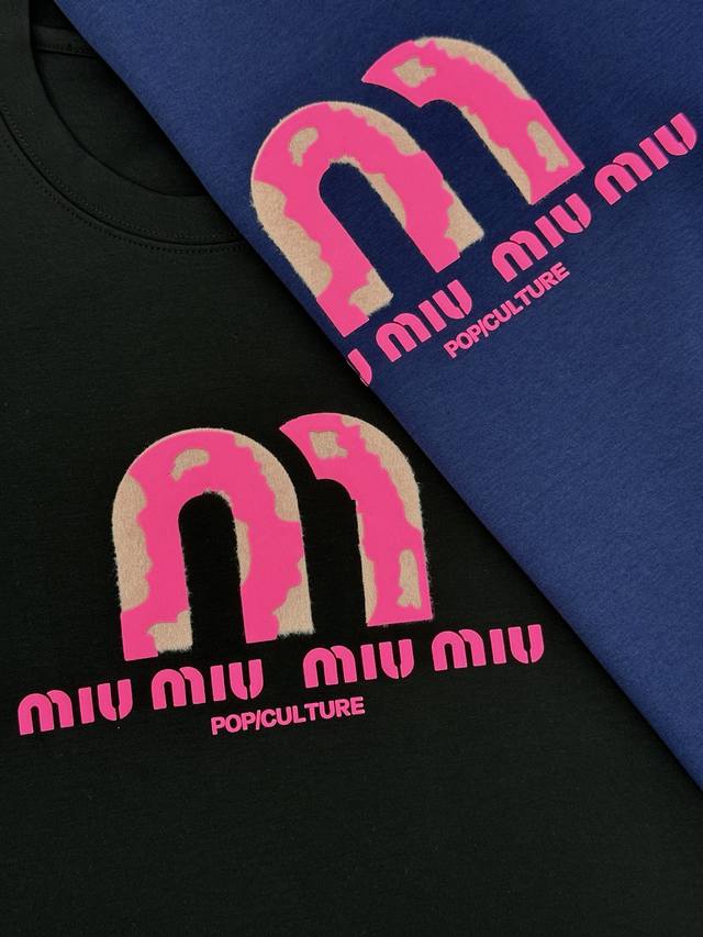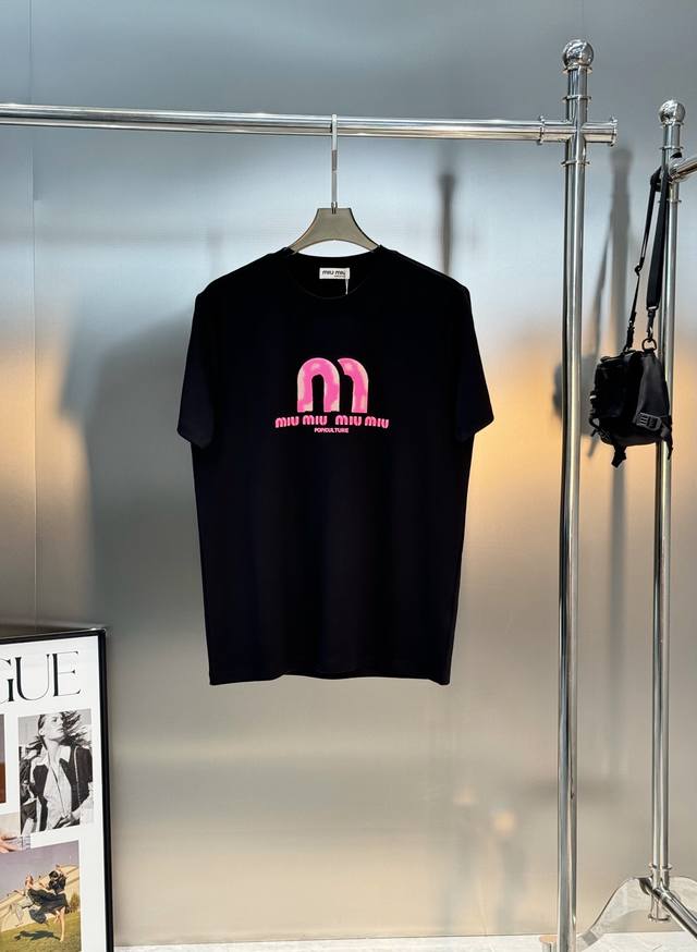 Miu Miu*2025 New Modal T-shirt. Featuring a striking pink logo, simple yet highly recognizable. Classic lettering and graphic 3D hot-stamping rhinestones! High-temperature embossing. Clean, refreshing, simple, and stylish. A versatile piece suitable for all ages. Recommended regular fit! A sophisticated style. Custom-made 300g modal combed fabric, superior material, naturally luxurious! The surface is smooth and skin-friendly, as comfortable as a baby's against the skin! Colors: Black, White, Dark Blue. Sizes: M-3XL (slim fit). S and 4XL are available for custom orders. For someone 175cm tall and weighing 140kg, L is recommended.