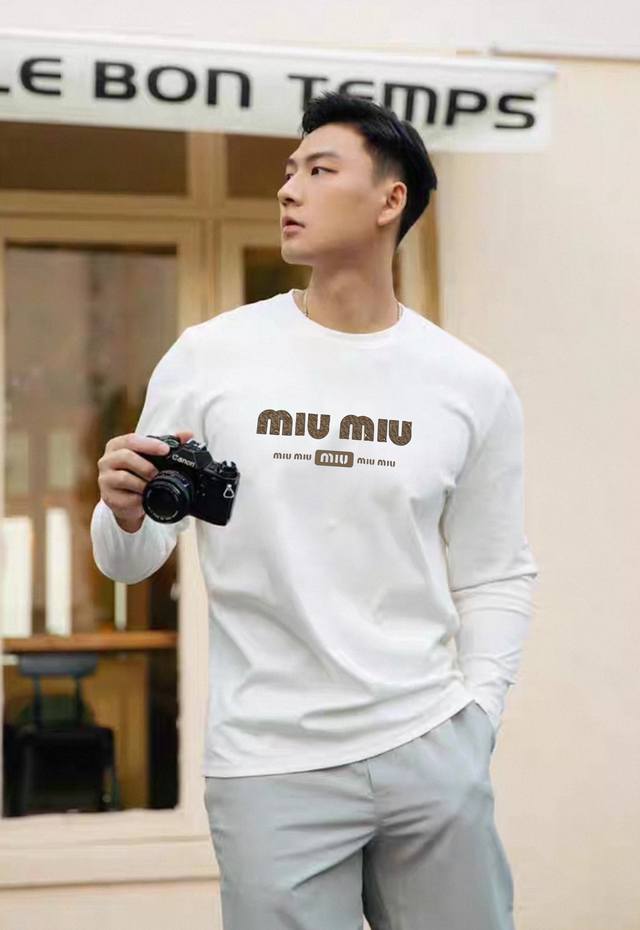 Miu Miu*2025S New Modal Long-Sleeve T-Shirt. The Miu Miu Monogram logo is prominently displayed on the chest, making it highly recognizable. The 3D Monogram logo is eye-catching, and the logo is covered with the brand's iconic pattern, giving it a premium feel. Classic logo design, comfortable and stylish regular fit! A clean and tailored style. Made with 300g combed modal fabric, a superior material that feels naturally luxurious! The surface is smooth and skin-friendly, as comfortable as a baby's against the skin! Colors: Black, White, Bright Red. Sizes: M-3XL Slim fit! S and 4XL can be custom-made. For someone 175cm tall and weighing 140kg, L is recommended.