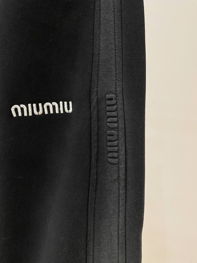 Miumiu 2025 Autumn/Winter New Arrival Casual Sweatpants. Features embroidered iconic brand logo on the pants and custom-made brand-engraved hardware, showcasing brand style. Crafted from 100% imported fabric, soft, comfortable, and breathable. A fashionable and casual piece, versatile and stylish. Sizes: M-3XL