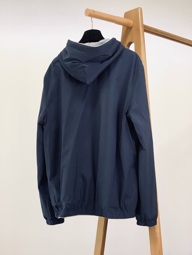 hooded design adds a casual and effortless touch to any look. The zipper features a metal pull engraved with the brand logo, ensuring smooth closure and a premium feel. The cuffs are designed to fit snugly around the wrist, providing windproof protection while maintaining a secure fit and a streamlined look. From the fabric selection to the detailed logos and zippers, the