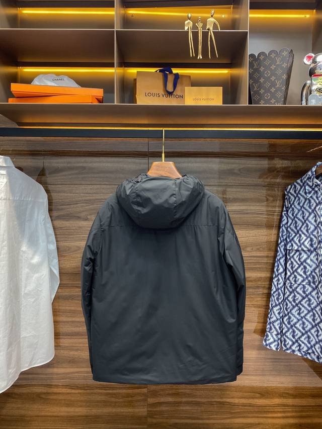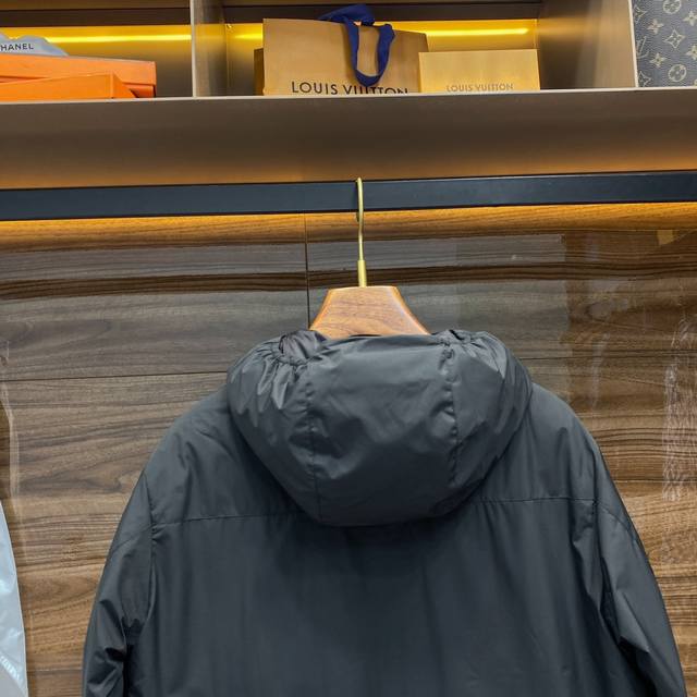 This down jacket is a perfect choice for men this fall and winter. Made from custom-made black matte nylon fabric, it's windproof, water-repellent, abrasion-resistant, and tear-resistant, providing exceptional outdoor performance. The interior is filled with European-standard white goose down and features a fully quilted lining to ensure even and full filling, keeping you warm in the coldest weather. The jacket also boasts a unique design, with quilted lacquer pockets on the front that contrast sharply with the main fabric, adding a touch of class. The custom-made, fully laminated zipper and zippered pockets add convenience and style ! The laser-perforated collar and elasticated hood provide wind protection while allowing for breathability. For added safety, 3M reflective dots are designed on the hem to keep you visible even at night. The fitted silhouette and elasticated drawcords at the cuffs and hem, made of stretch fabric, allow for custom adjustments to ensure a perfect fit. Whether you're facing a challenge or enjoying some downtime, this jacket is the perfect choice! Size: 1-4