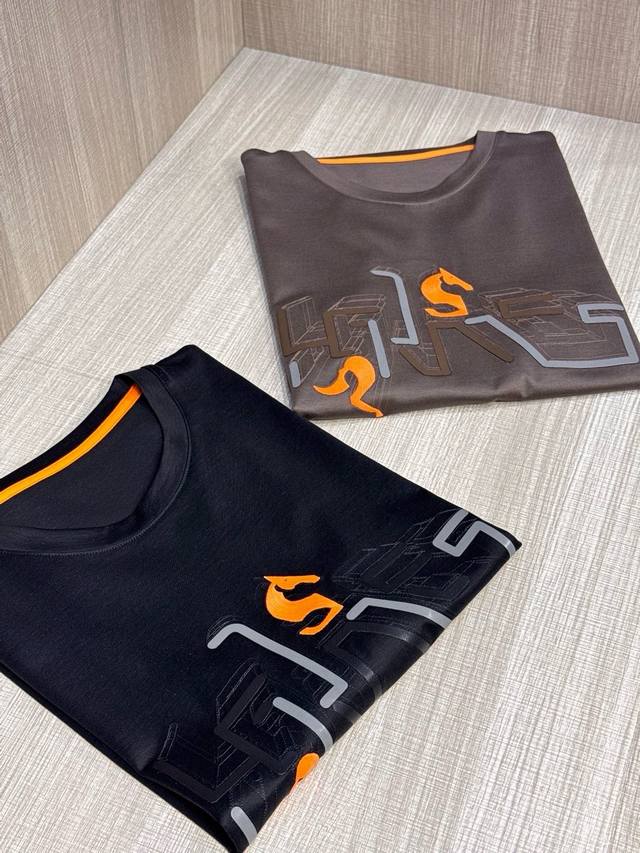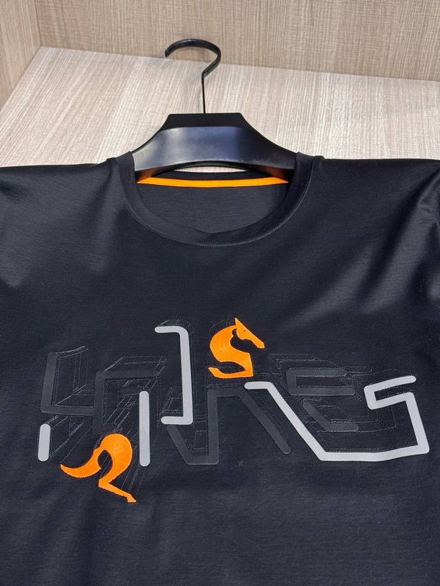 Model Hs010#, the latest 3D geometric pattern embroidered men's round neck T-sh