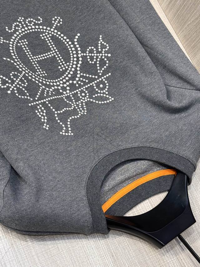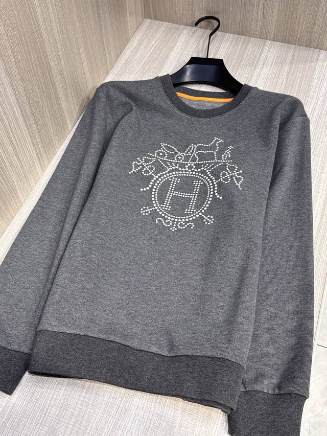 , model Hs206#, is the latest Aimajia 2025 Autumn/Winter men's crewneck sweatshirt with horse-drawn "H" embroidery. This traditional, classic pullover style features the iconic horse-drawn "H" pattern on the chest. Utilizing high-end, 100,000-stitch 3D embroidery craftsmanship, each stitch and thread is meticulously crafted, a level of detail that requires a magnifying glass to truly appreciate. The sweatshirt boasts a strong sense of layering, a rich, three-dimensional look, and a refined, high-quality feel, all while maintaining a strong brand identity. The slightly loose fit is versatile, creating a stylish and refined look that flatters the skin tone. The quality and craftsmanship are impeccable. Wear it alone or layer it with a jacket or down jacket for an instantly stylish look.