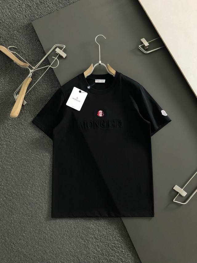 2025 Spring and Summer Black Embossed Letter Labeling Short Sleeves, Top Elements Fusion, Classic Short Sleeves 3 Labels Complete, Fashionable Men, Whether It's Upper Body Comfort or It's Unparalleled