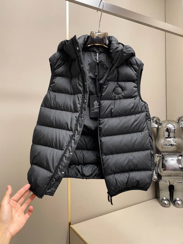 Mon New Valmasque Men's Detachable Hooded Down Vest Ddd The Valmasque down vest is made of lightweight, functional nylon fabric, blending 90s minimalist style with modern practicality. It features a detachable hood and logo lettering at the zipper closure. Ddd Details: Made of fine, soft nylon fabric, down-filled, detachable hood, zip-lock pockets, elastic trim, interior label trim. Size Chart (24023): 1 2 3 4 5 Ddd 1: Shoulder 45cm - Chest 104cm - Length 65cm Ddd 2: Shoulder 46cm - Chest 108cm - Length 66cm Ddd 3: Shoulder 47cm - Chest 112cm - Length 67cm Ddd 4: Shoulder 48cm - Chest 116cm - Length 68cm Ddd 5: Shoulder 48cm - Chest 120cm - Length 69cm